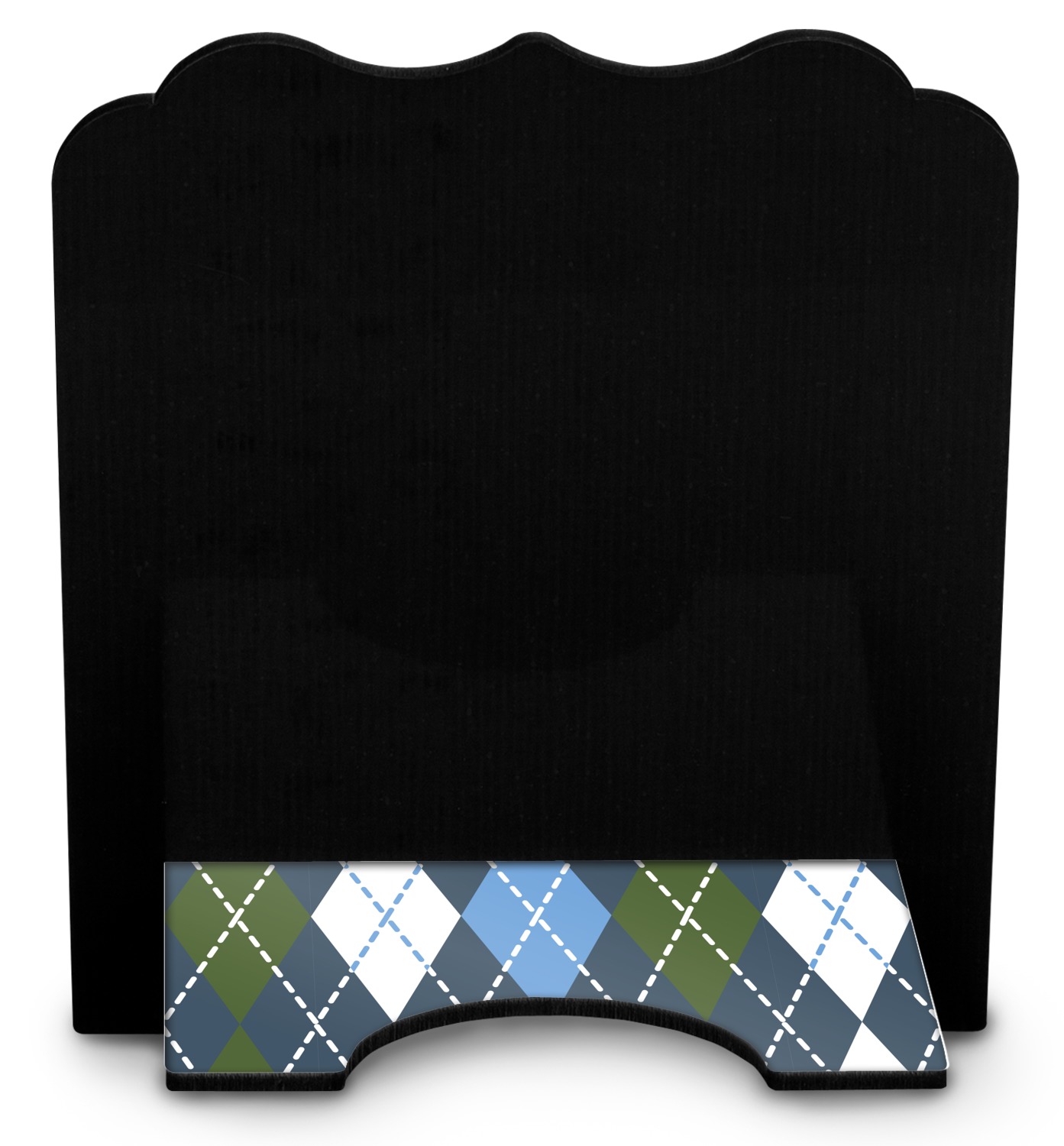 The stand is comprised of two hardboard pieces that fit snugly together and stabilize one another. The bottom part of the iPad stand supports your tablet, and has space for your tablets charger while in use. At 9.25" x 11.5", this tablet mount can support a device between the sizes of the iPad Pro and the iPad Mini 2. The uppermost part of the stand features a decorative, curved edge for a classy, suave appearance. We print your customization atop the face of the stand, in vibrant color. The remaining sides are colored a sleek black.