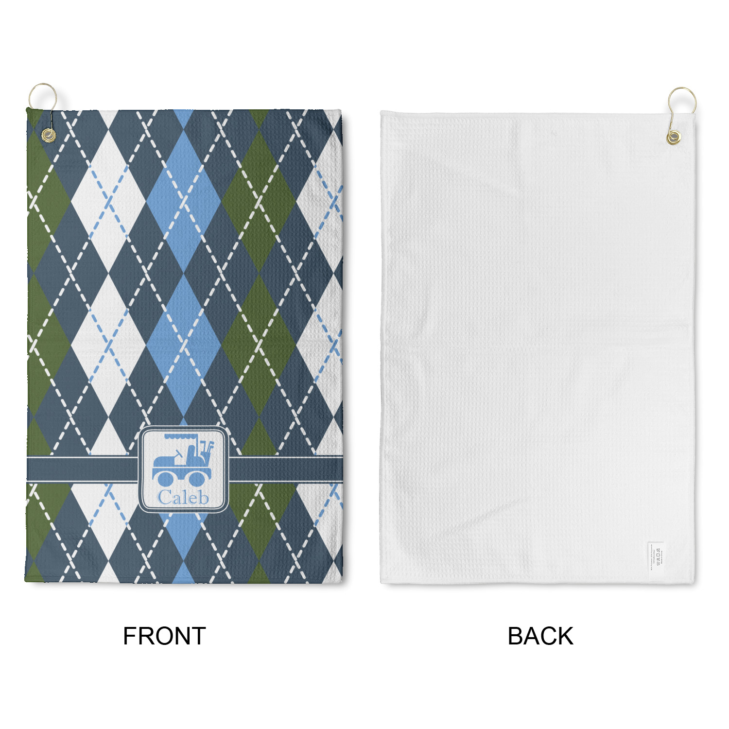 Your custom design is printed on the front and the back is white. The woven honeycomb pockets give you a great texture for scrubbing and cleaning those grass stains off your club or a dirt spot off your ball to ensure your equipment is all in peak condition.