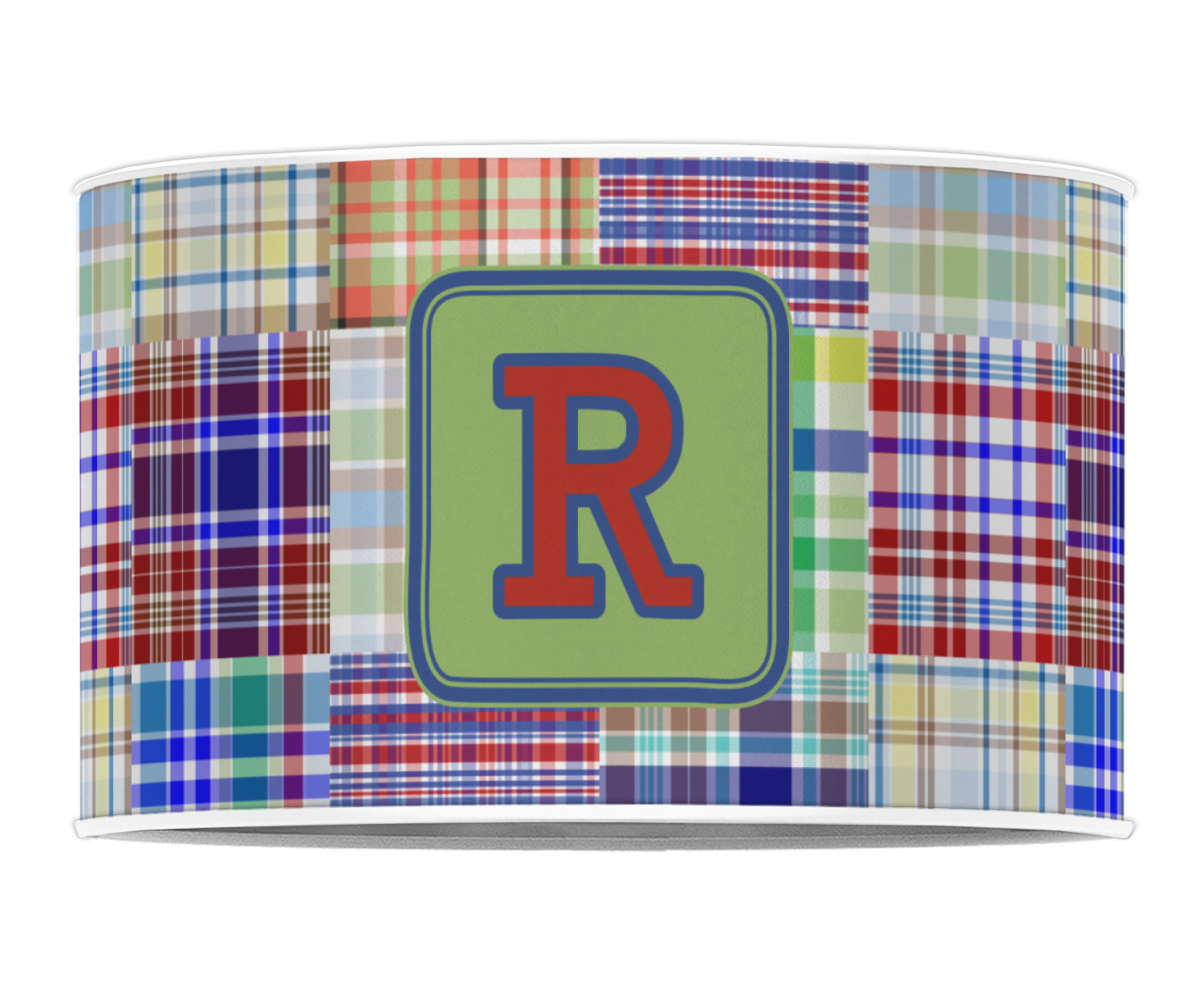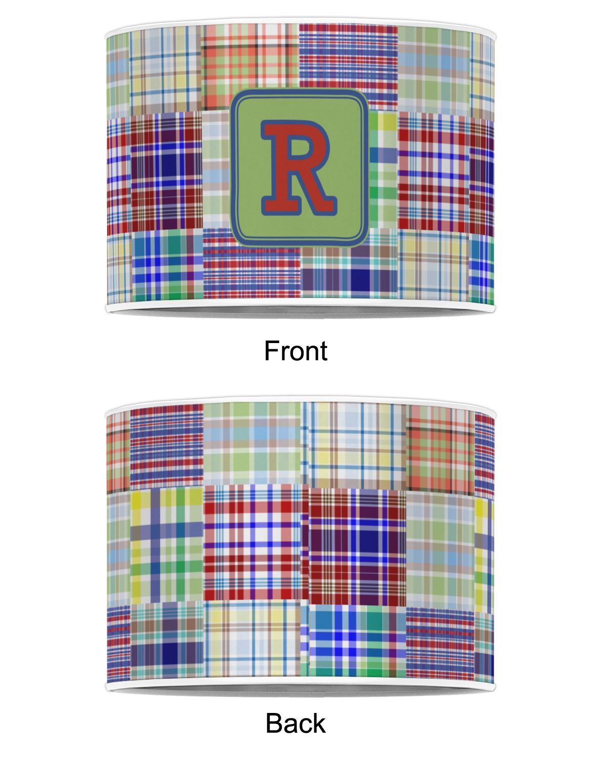 A square label is the perfect place for your initial, to make this collection of plaids truly you.