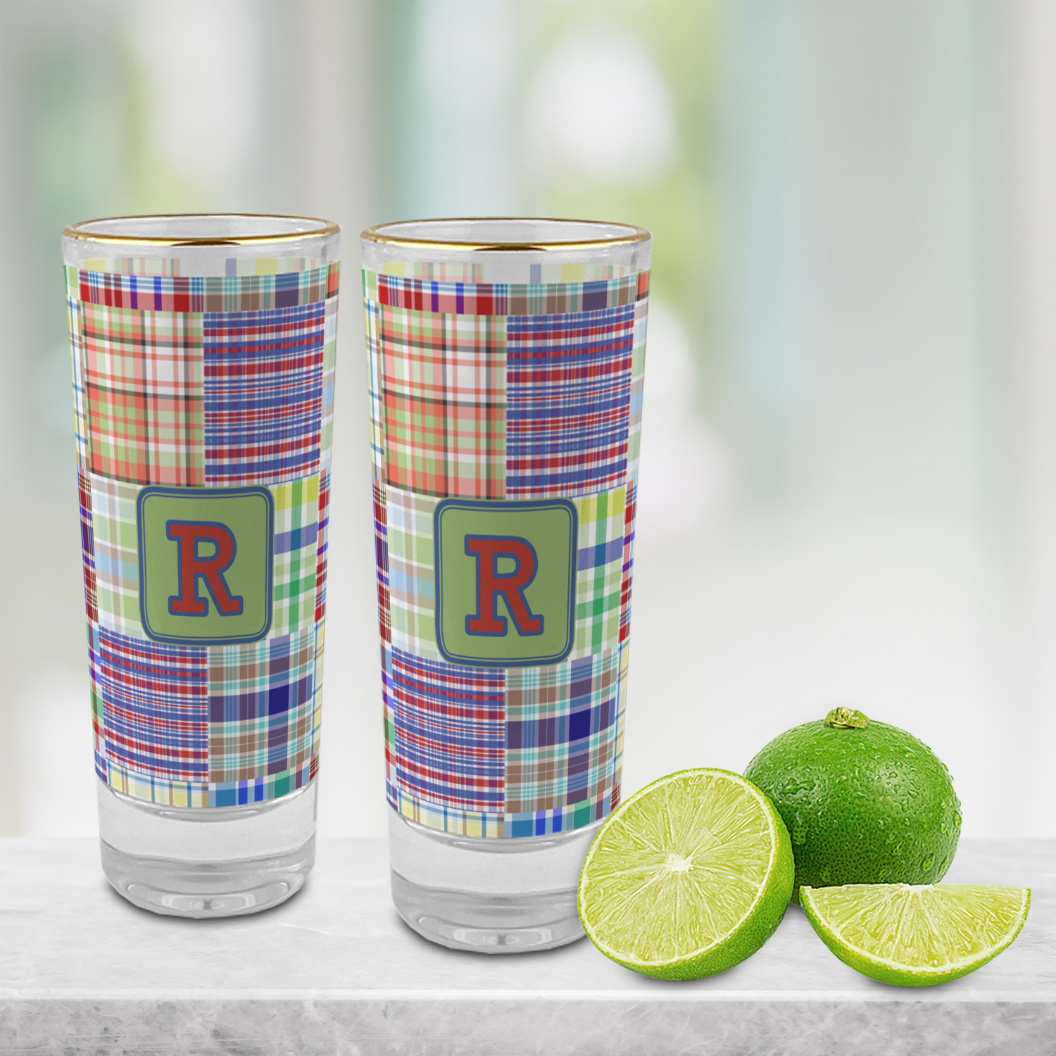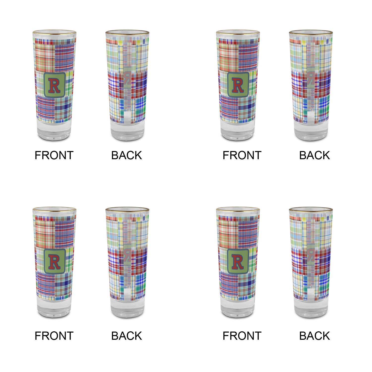 These glass shooter glasses are printed in full color with the design of your choice. These are a tall shooter 2 oz size and stand 4" tall. The print is a full wrap design to boldly display your personalization.