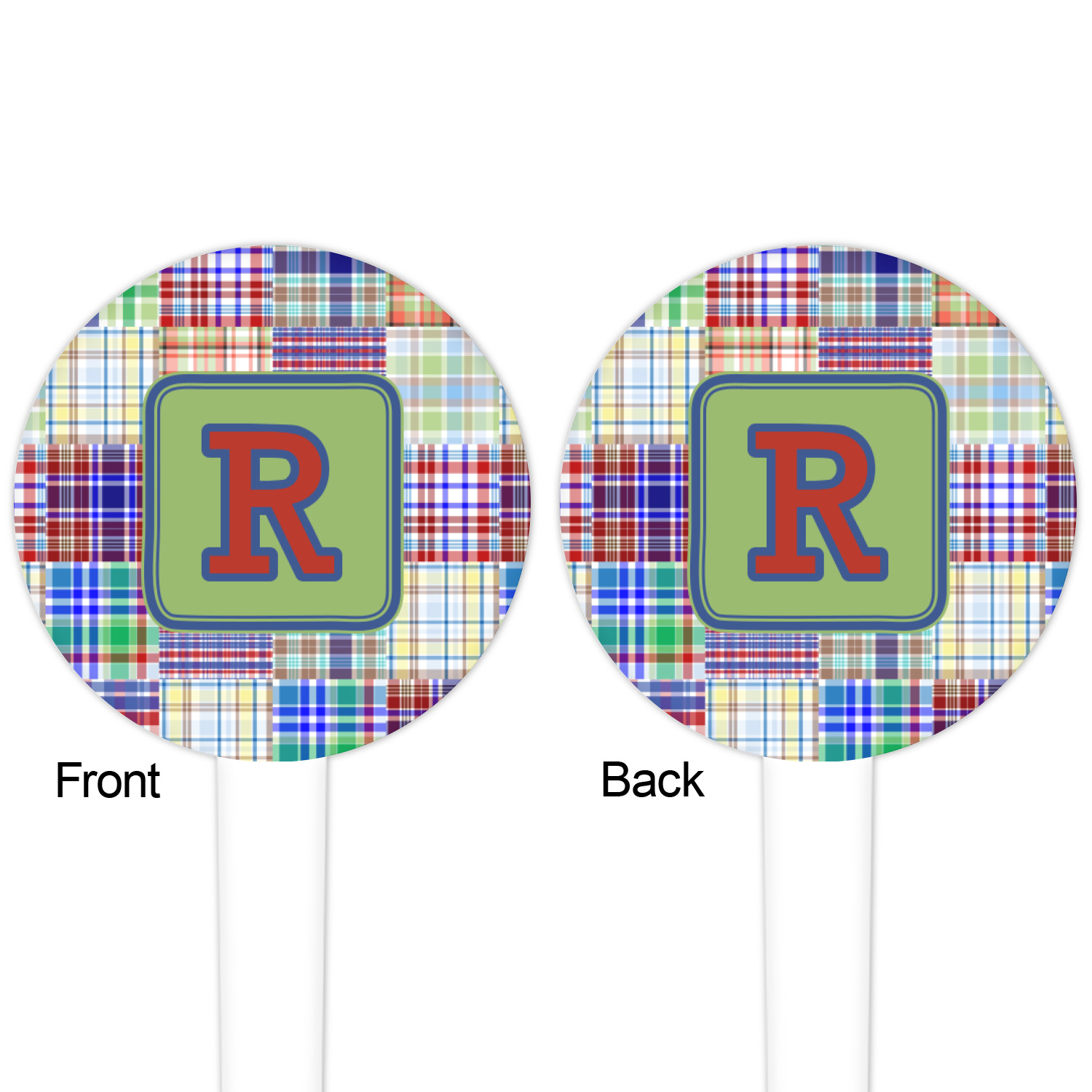 A square label is the perfect place for your initial, to make this collection of plaids truly you.