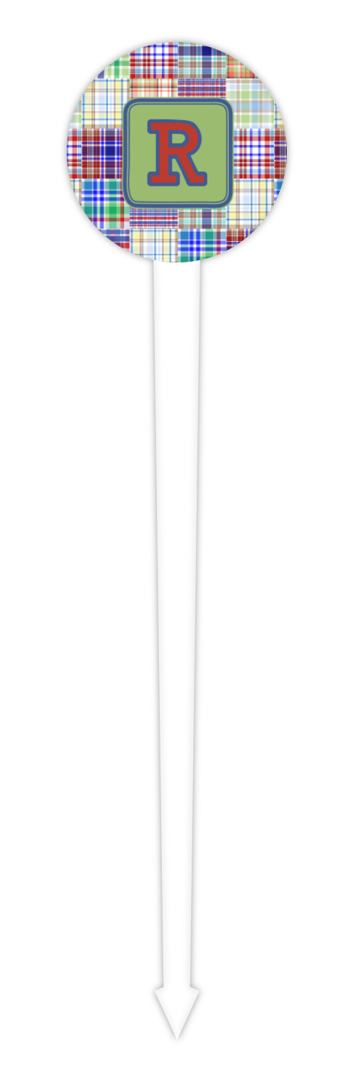 A square label is the perfect place for your initial, to make this collection of plaids truly you.