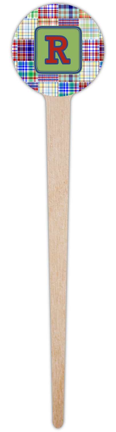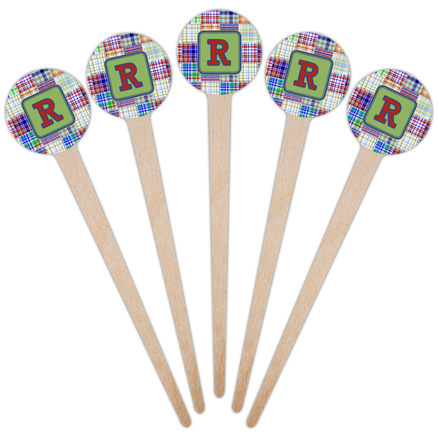 A square label is the perfect place for your initial, to make this collection of plaids truly you.