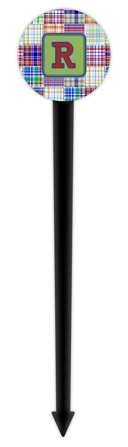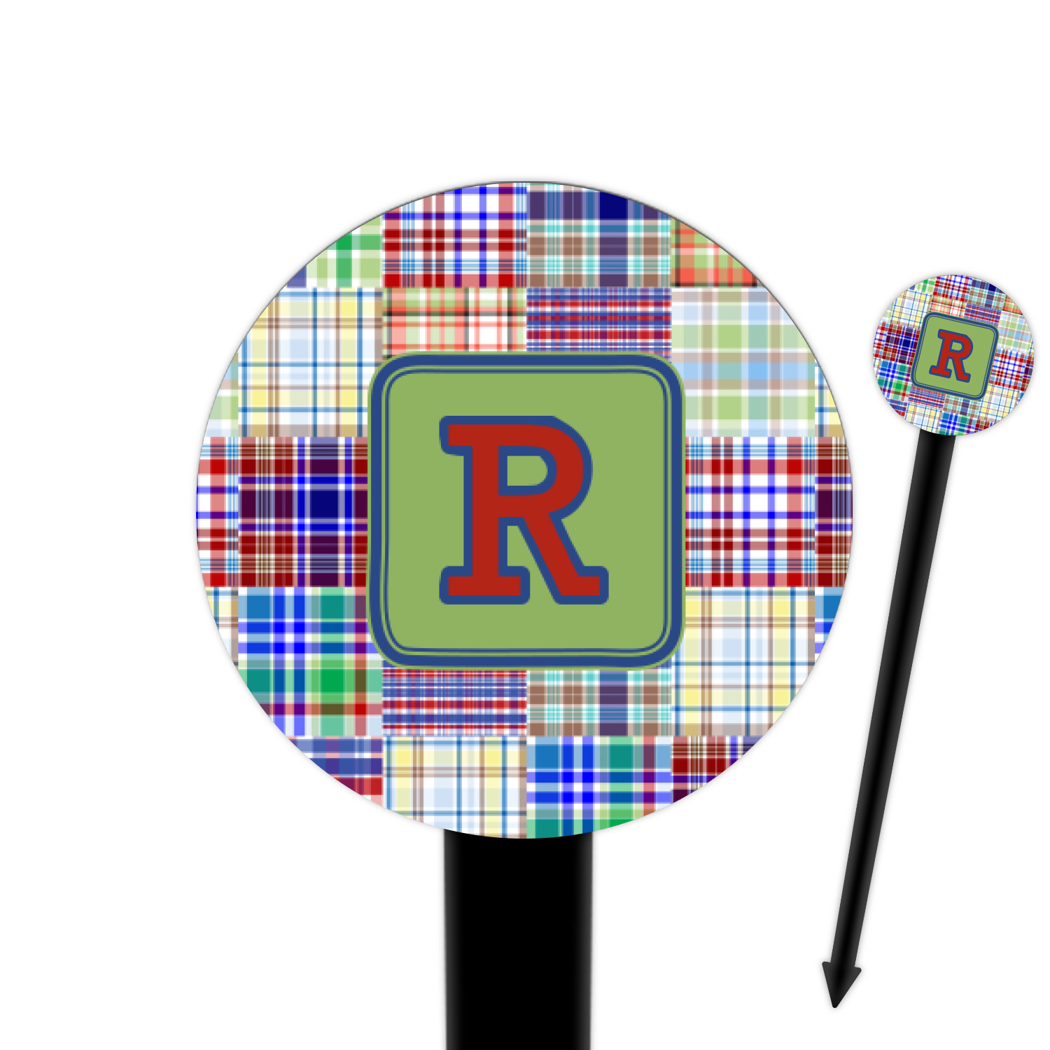 A square label is the perfect place for your initial, to make this collection of plaids truly you.