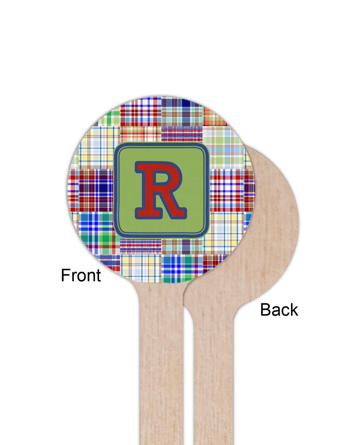 A square label is the perfect place for your initial, to make this collection of plaids truly you.
