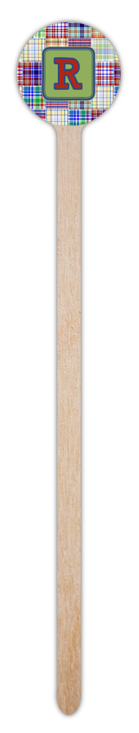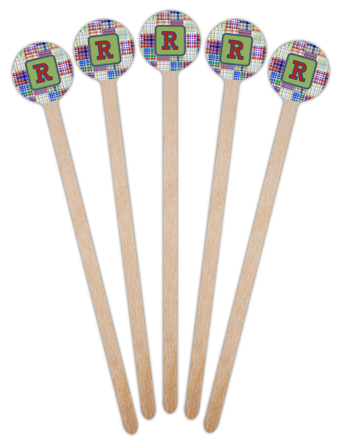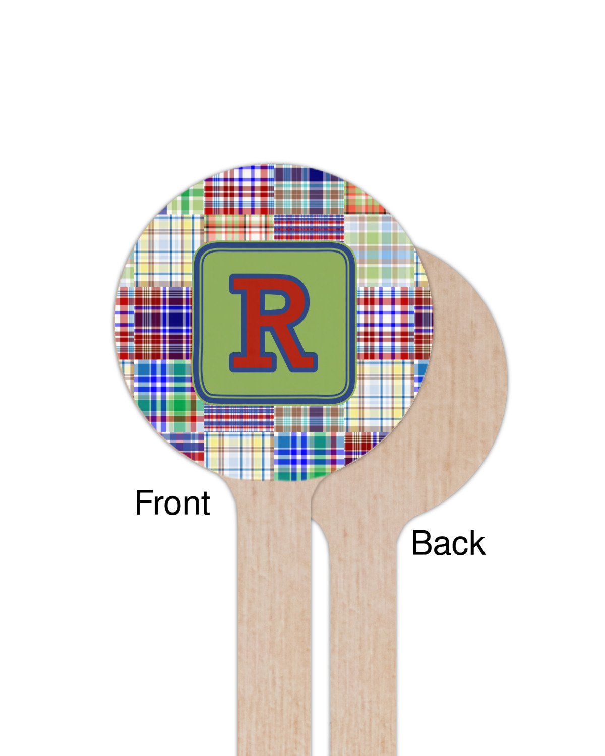 A square label is the perfect place for your initial, to make this collection of plaids truly you.