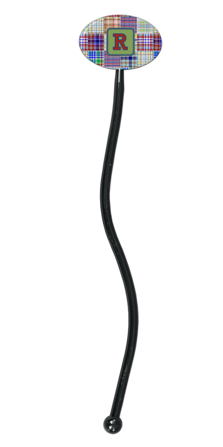 A square label is the perfect place for your initial, to make this collection of plaids truly you.