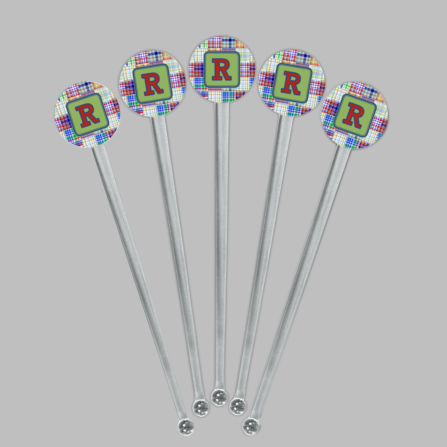 A square label is the perfect place for your initial, to make this collection of plaids truly you.
