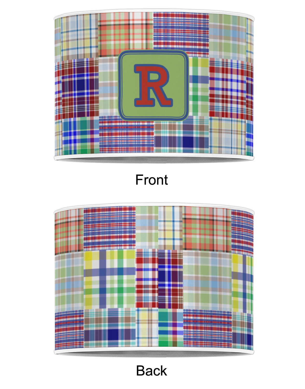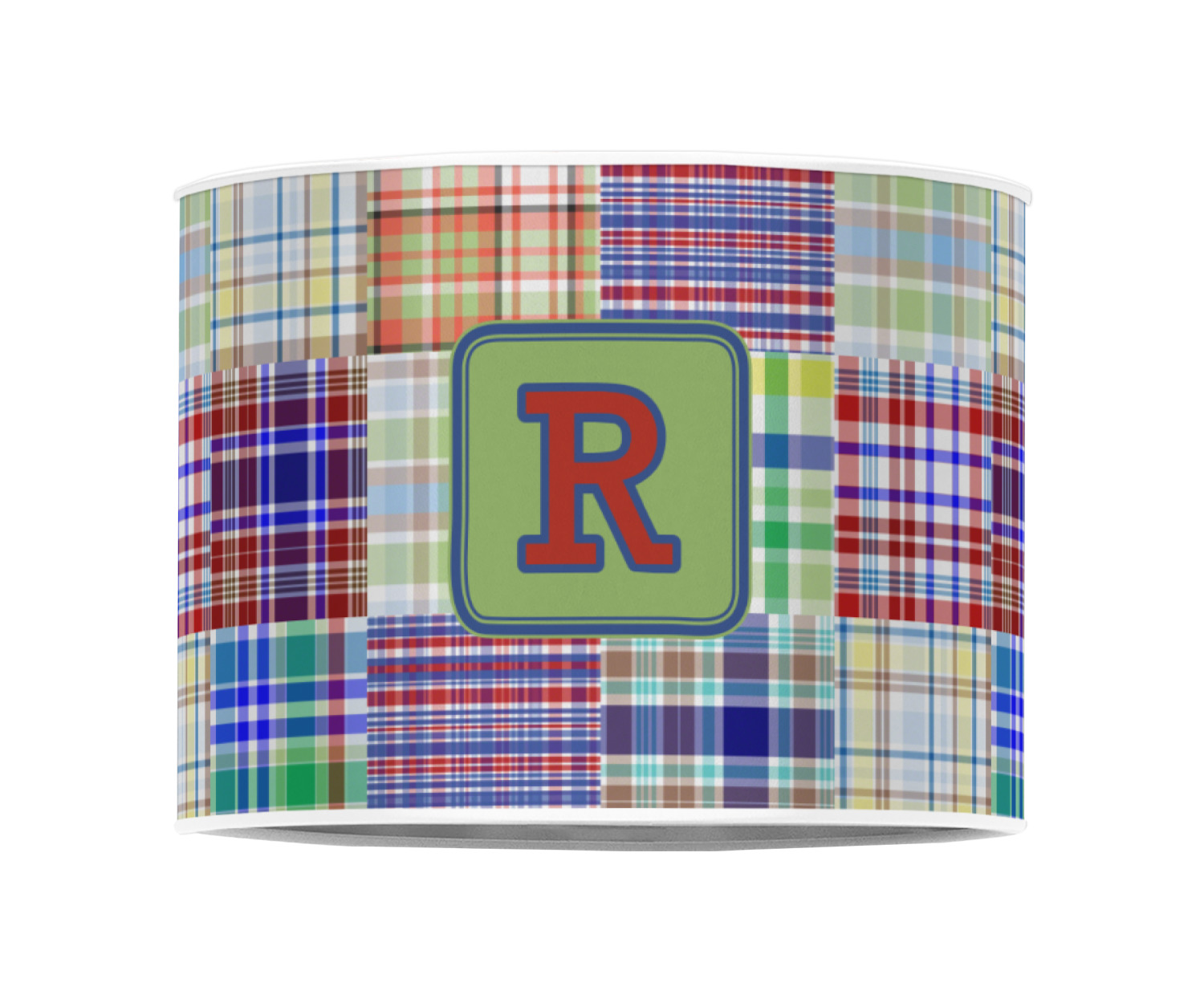 A square label is the perfect place for your initial, to make this collection of plaids truly you.