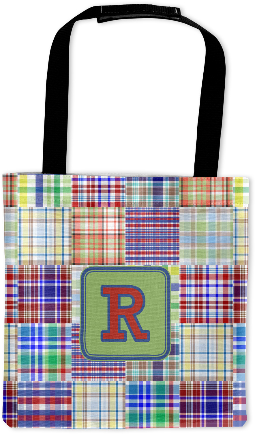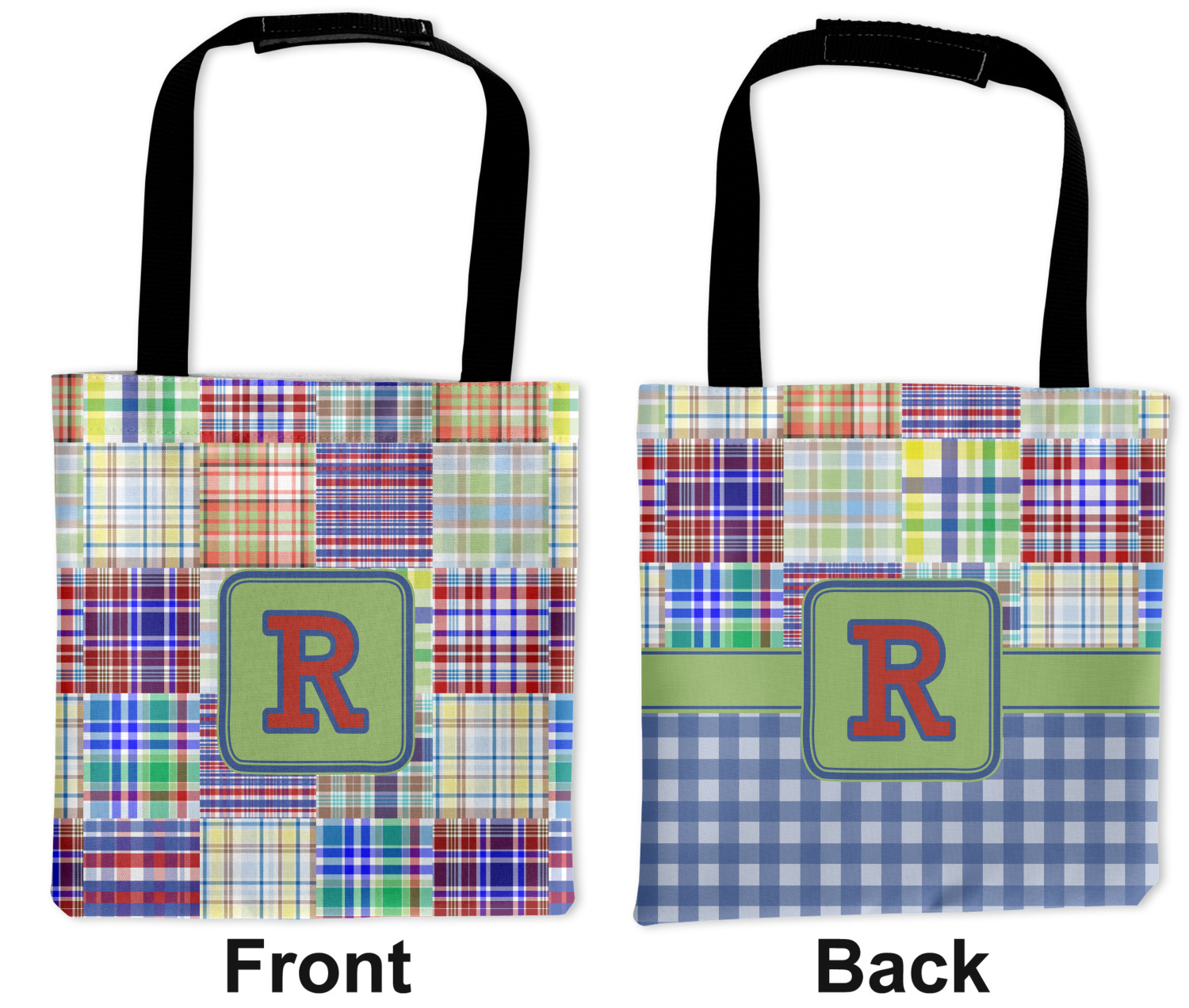 A square label is the perfect place for your initial, to make this collection of plaids truly you.