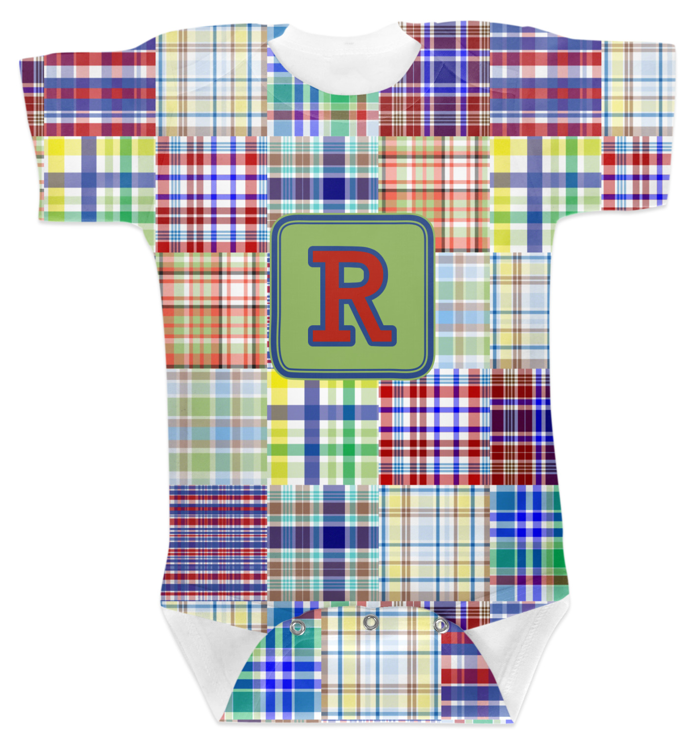 A square label is the perfect place for your initial, to make this collection of plaids truly you.