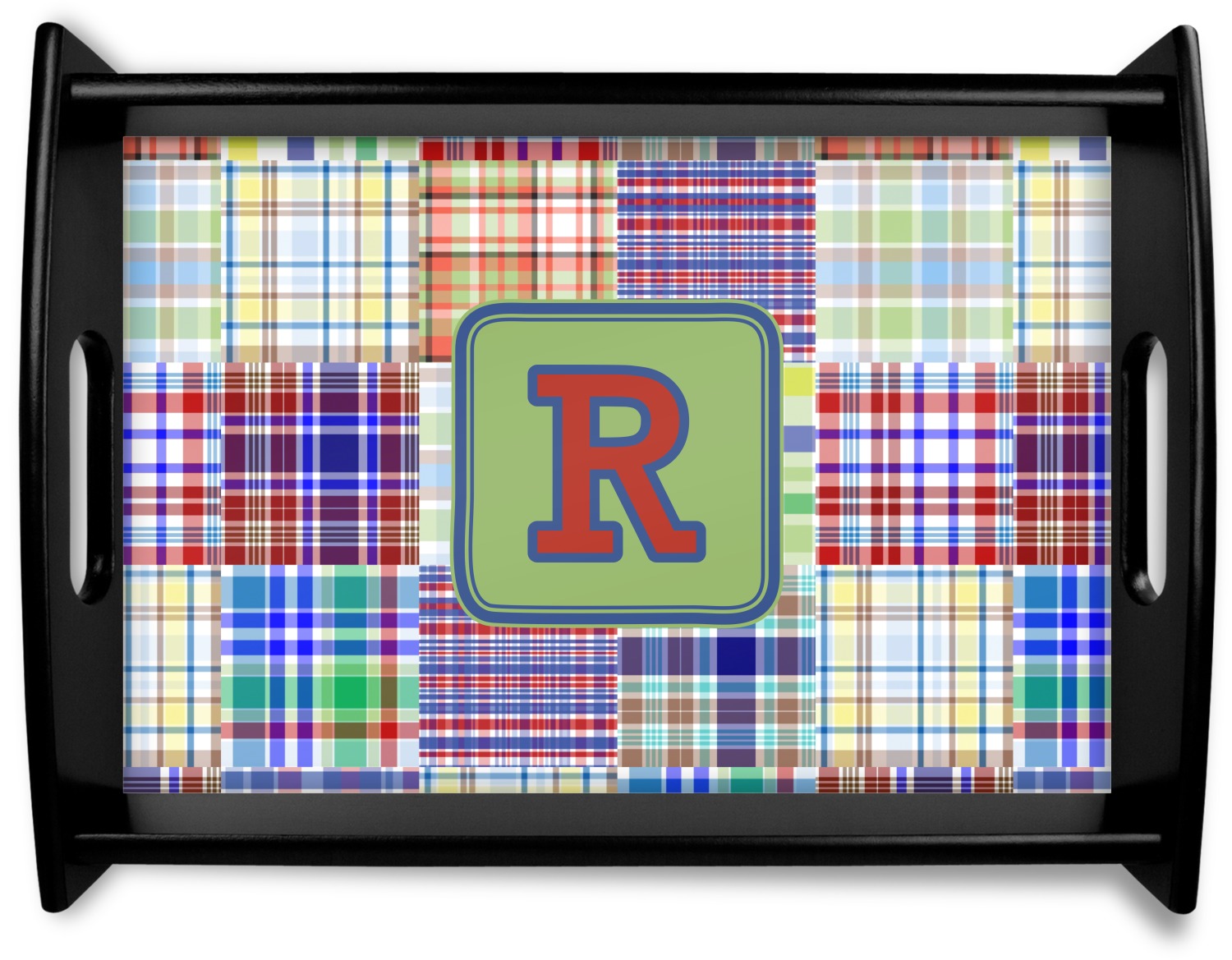 A square label is the perfect place for your initial, to make this collection of plaids truly you.