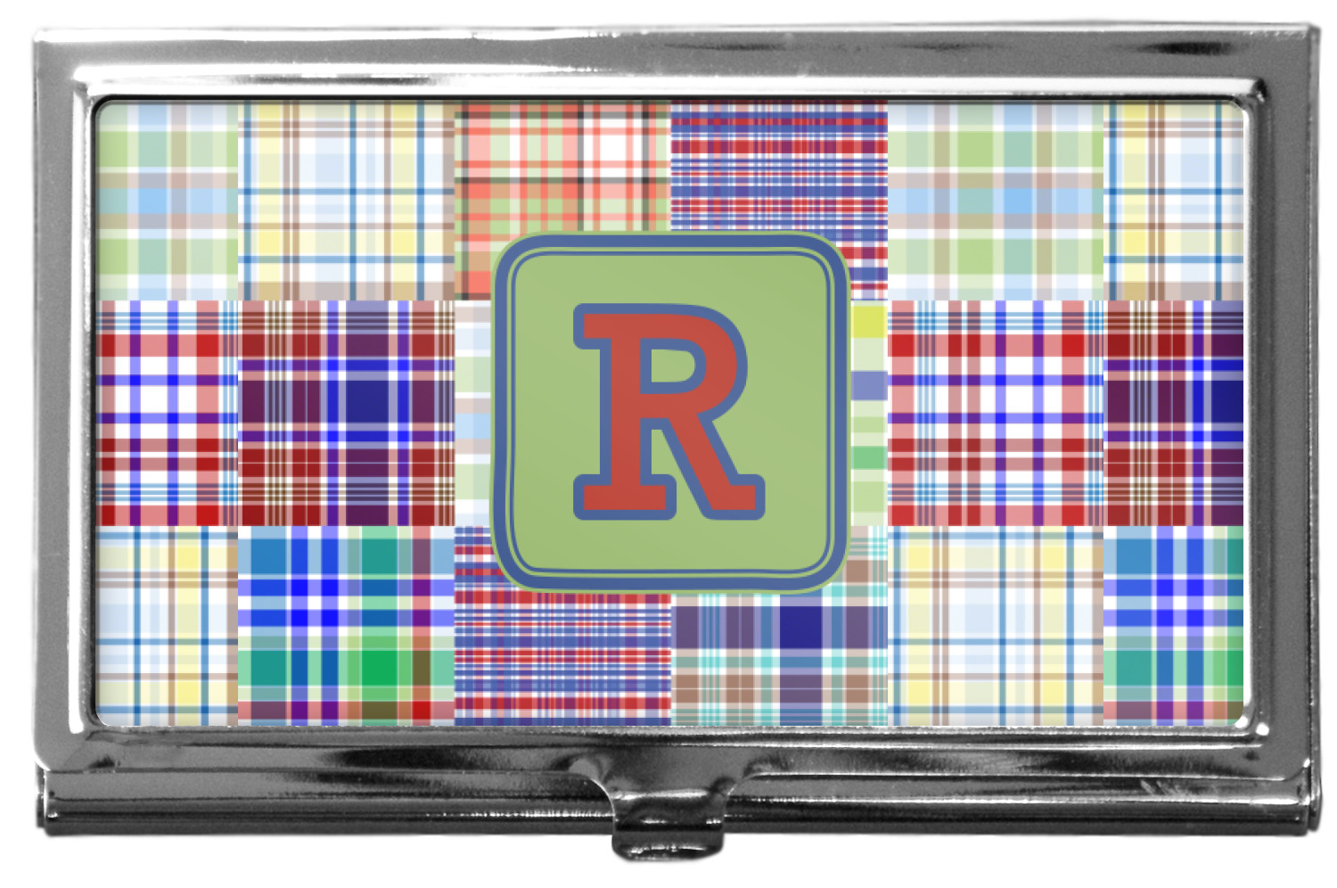 A square label is the perfect place for your initial, to make this collection of plaids truly you.