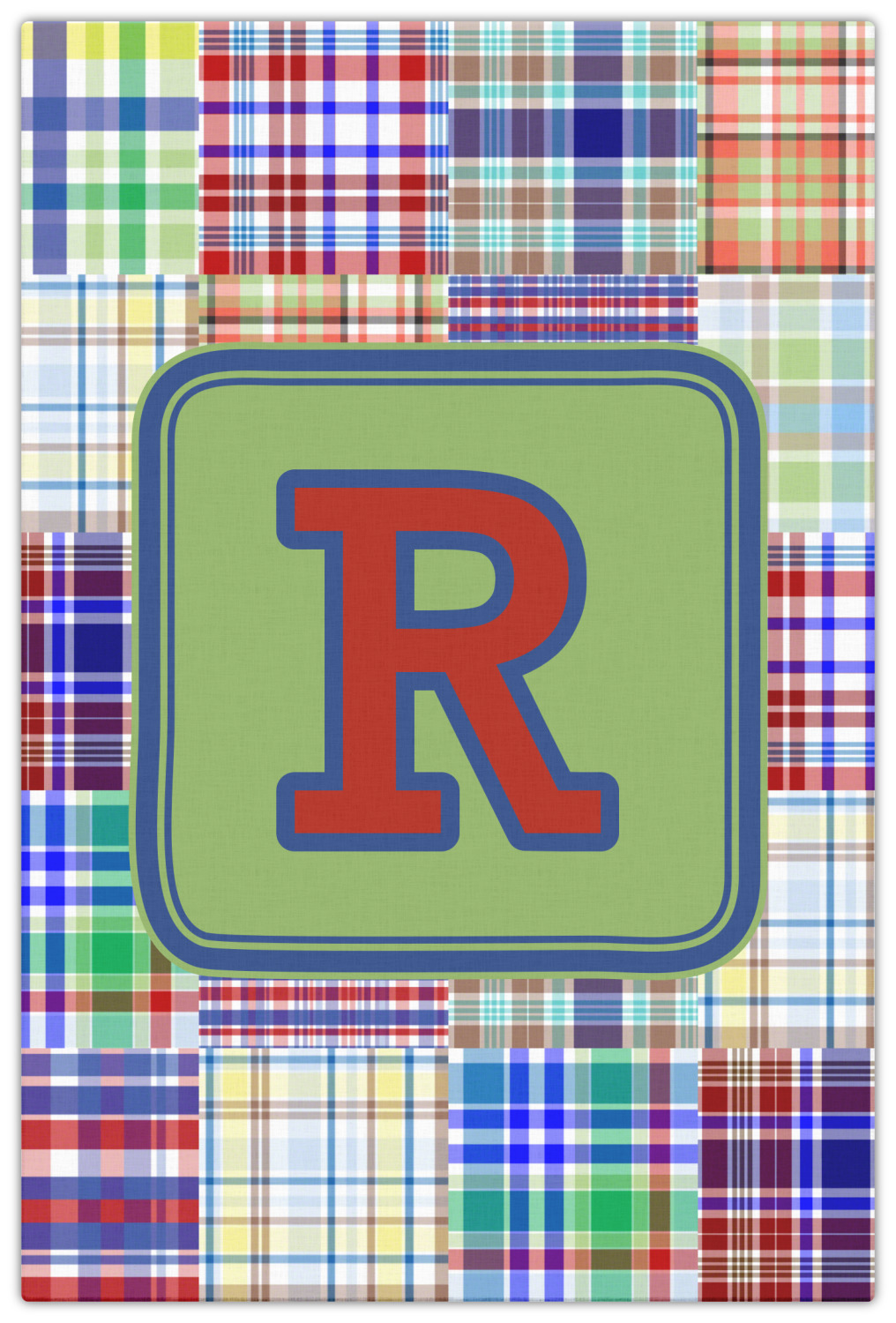 A square label is the perfect place for your initial, to make this collection of plaids truly you.