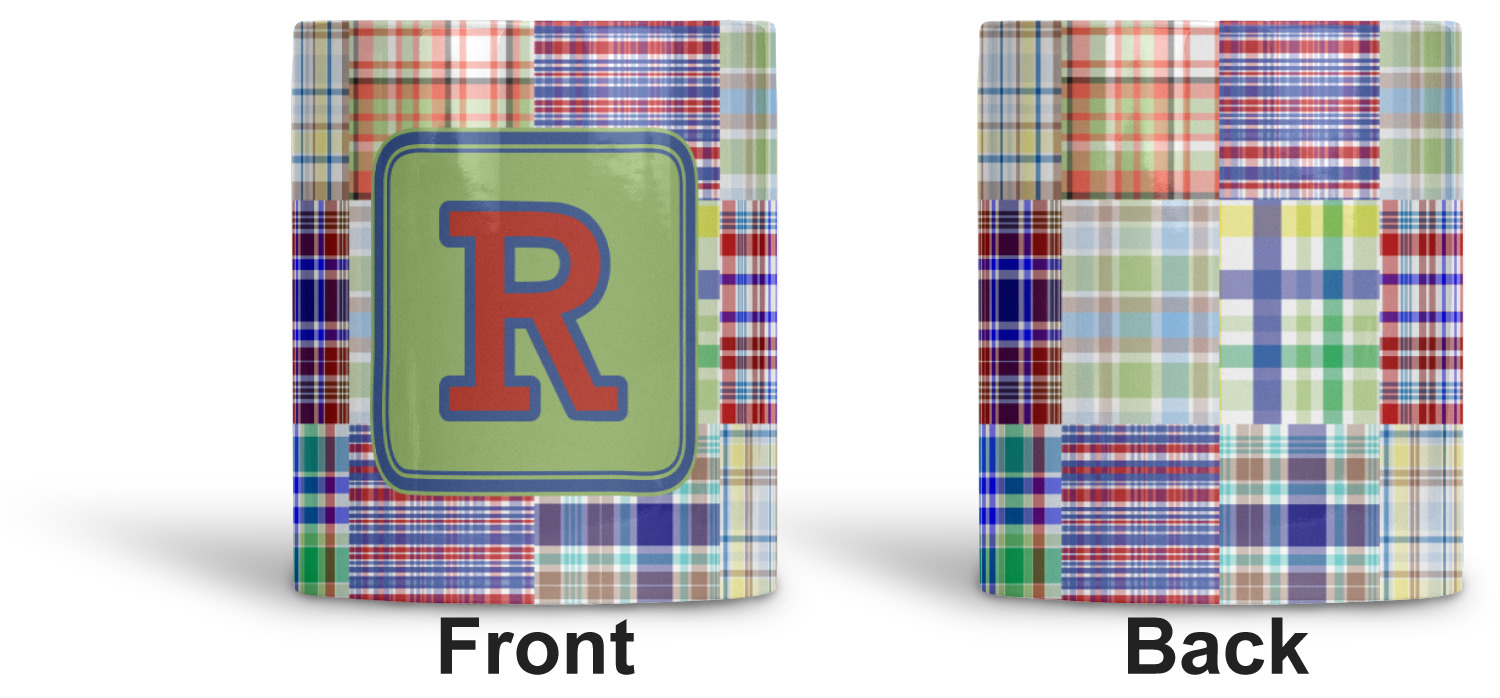 A square label is the perfect place for your initial, to make this collection of plaids truly you.