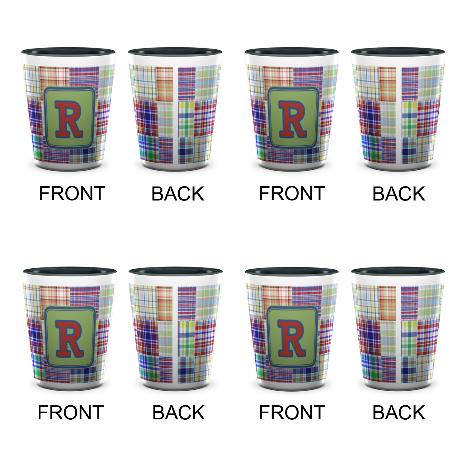 A square label is the perfect place for your initial, to make this collection of plaids truly you.