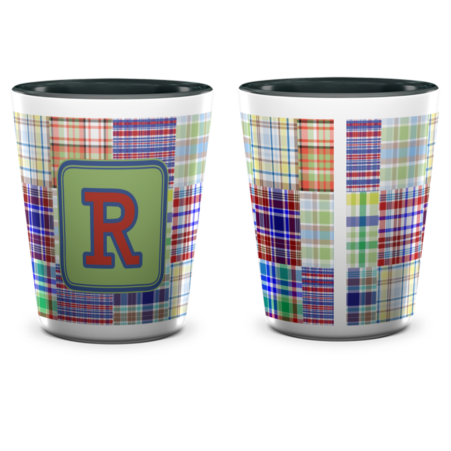 A square label is the perfect place for your initial, to make this collection of plaids truly you.