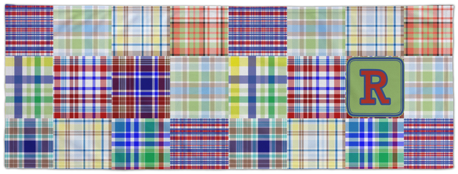 A square label is the perfect place for your initial, to make this collection of plaids truly you.