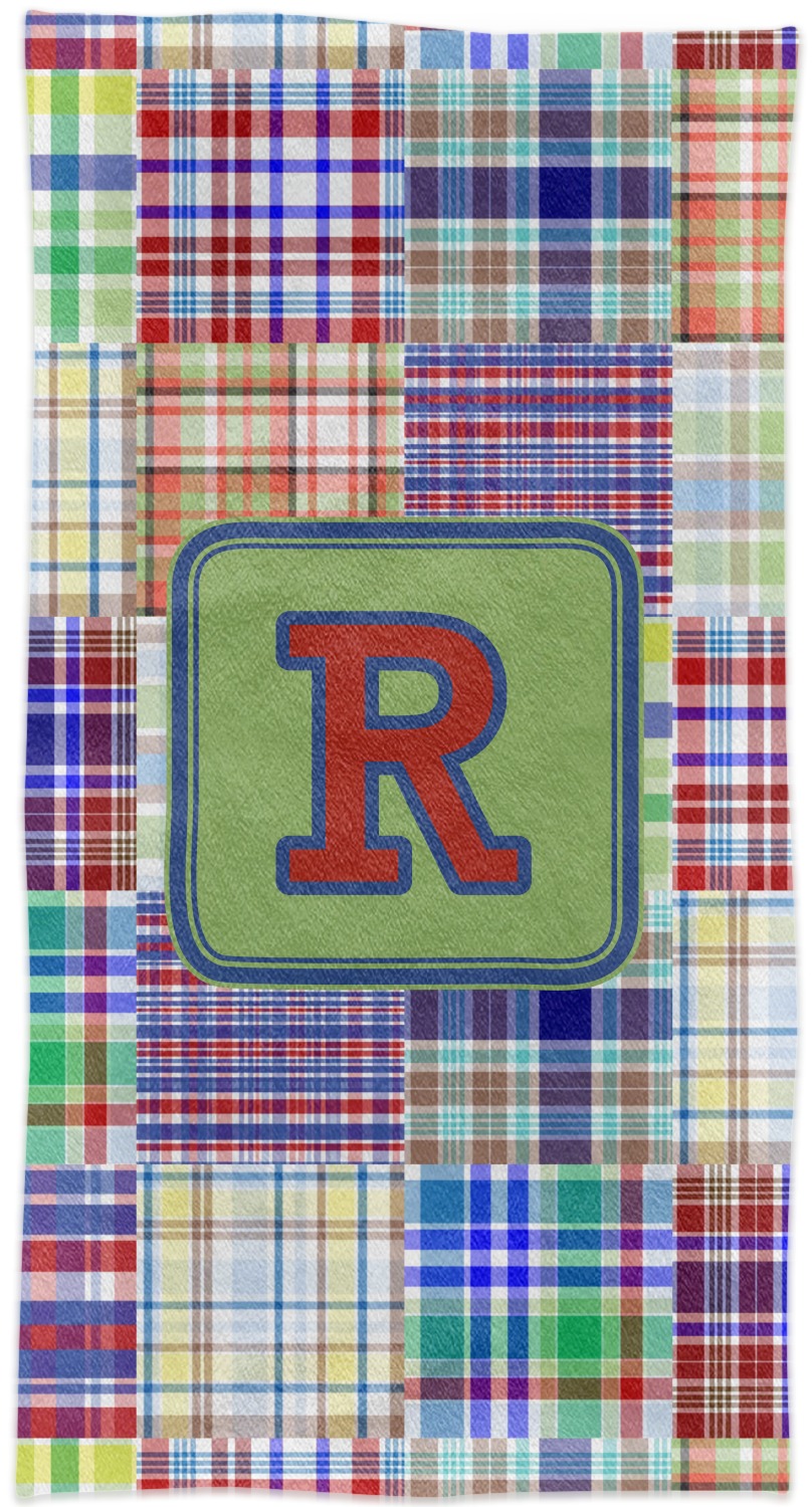 A square label is the perfect place for your initial, to make this collection of plaids truly you.