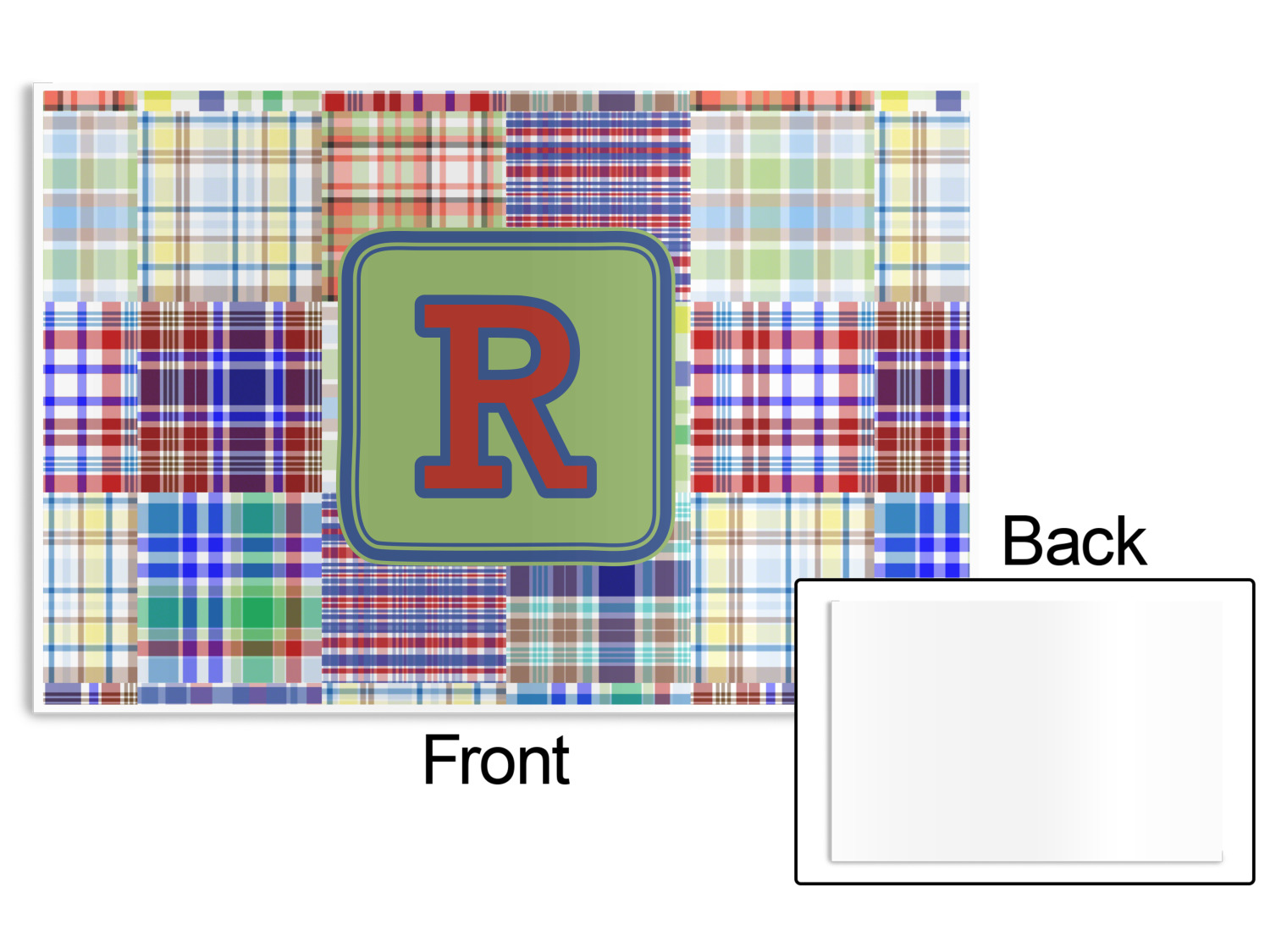 A square label is the perfect place for your initial, to make this collection of plaids truly you.