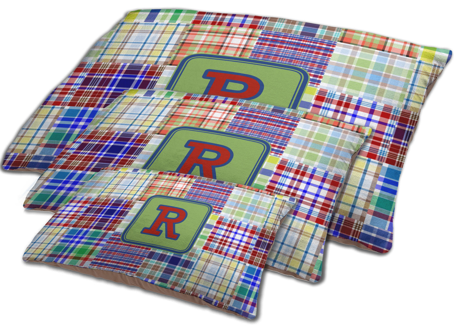 A square label is the perfect place for your initial, to make this collection of plaids truly you.