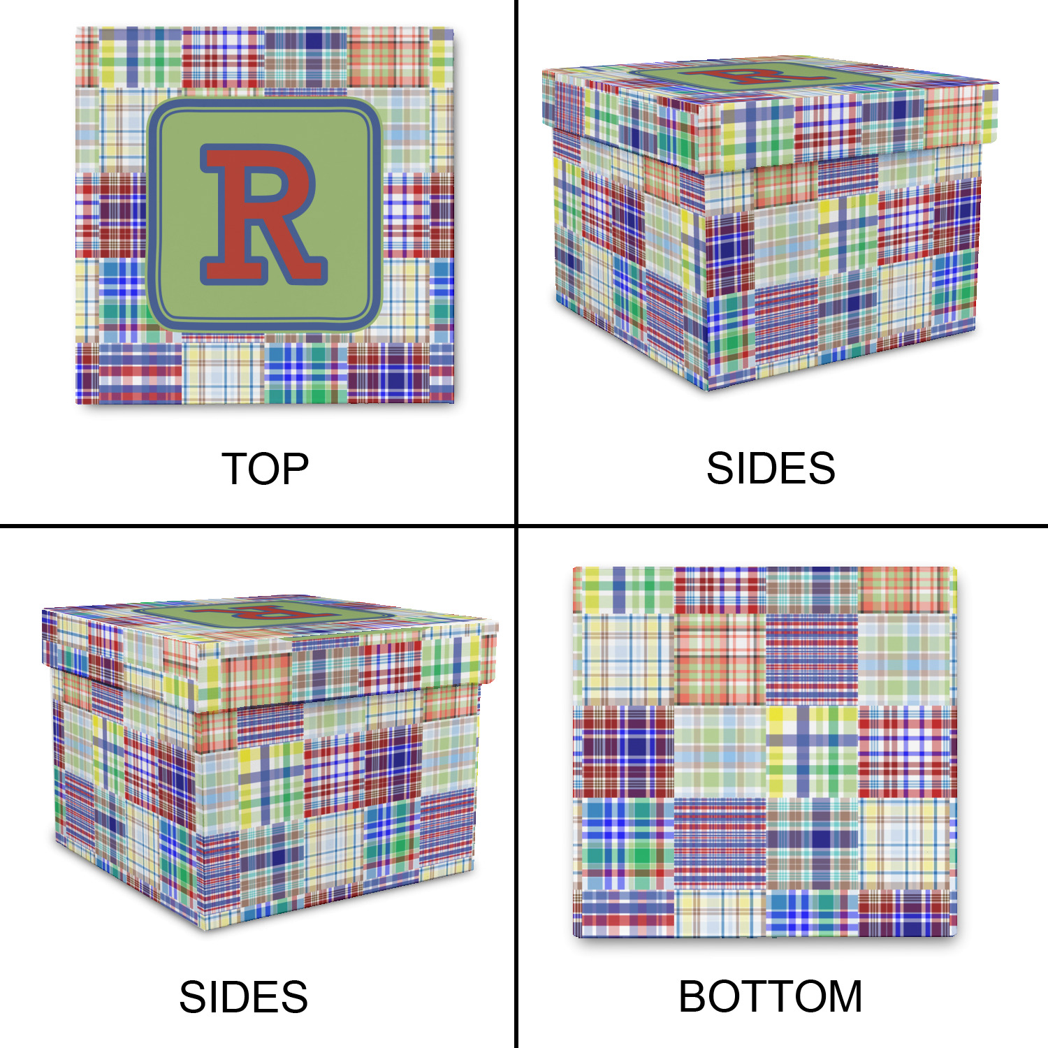 A square label is the perfect place for your initial, to make this collection of plaids truly you.