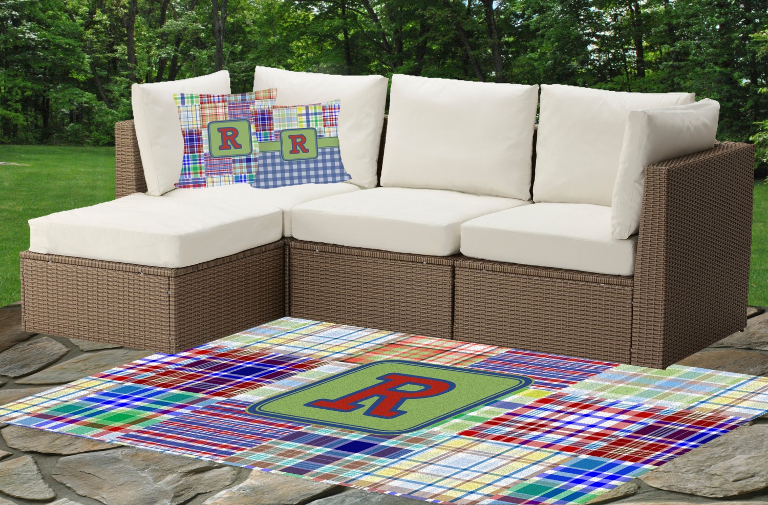 A square label is the perfect place for your initial, to make this collection of plaids truly you.