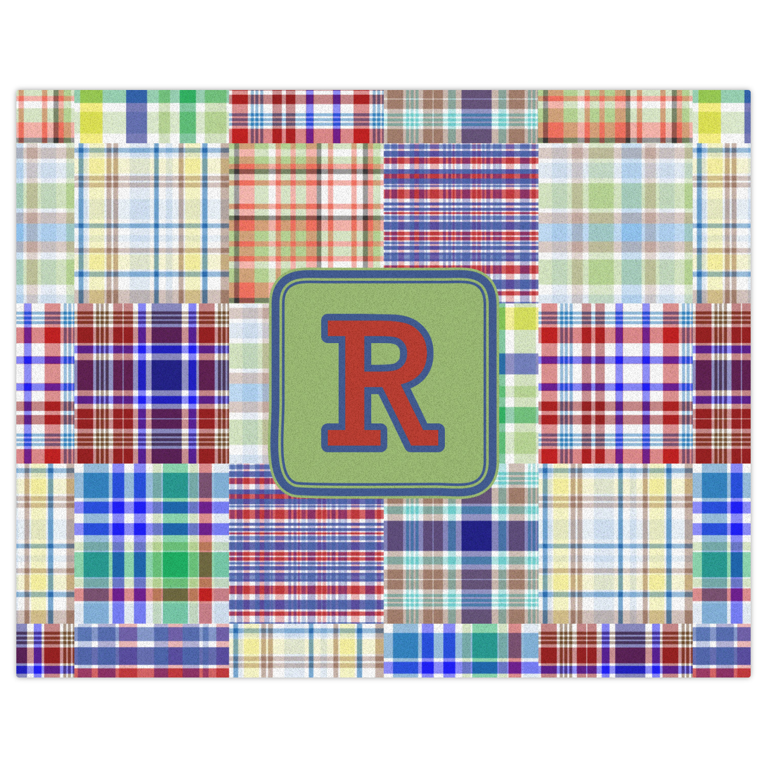 A square label is the perfect place for your initial, to make this collection of plaids truly you.