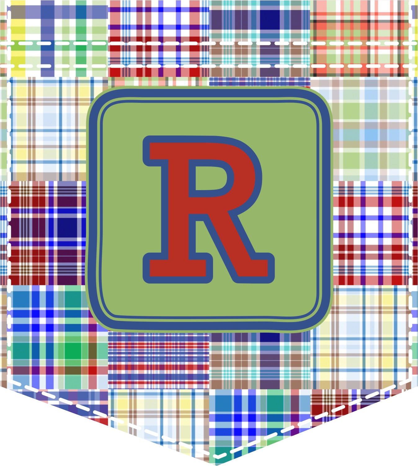 A square label is the perfect place for your initial, to make this collection of plaids truly you.