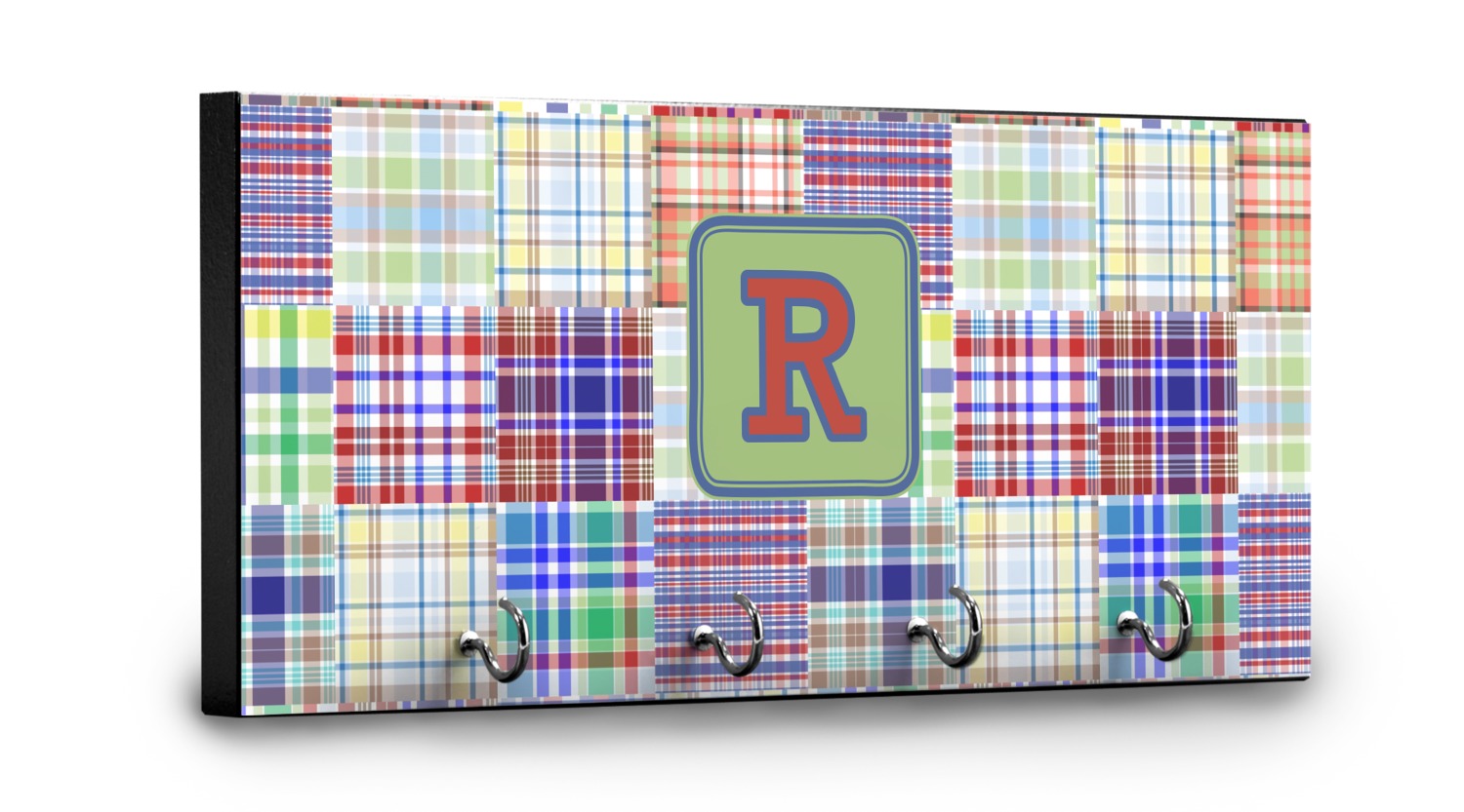 A square label is the perfect place for your initial, to make this collection of plaids truly you.