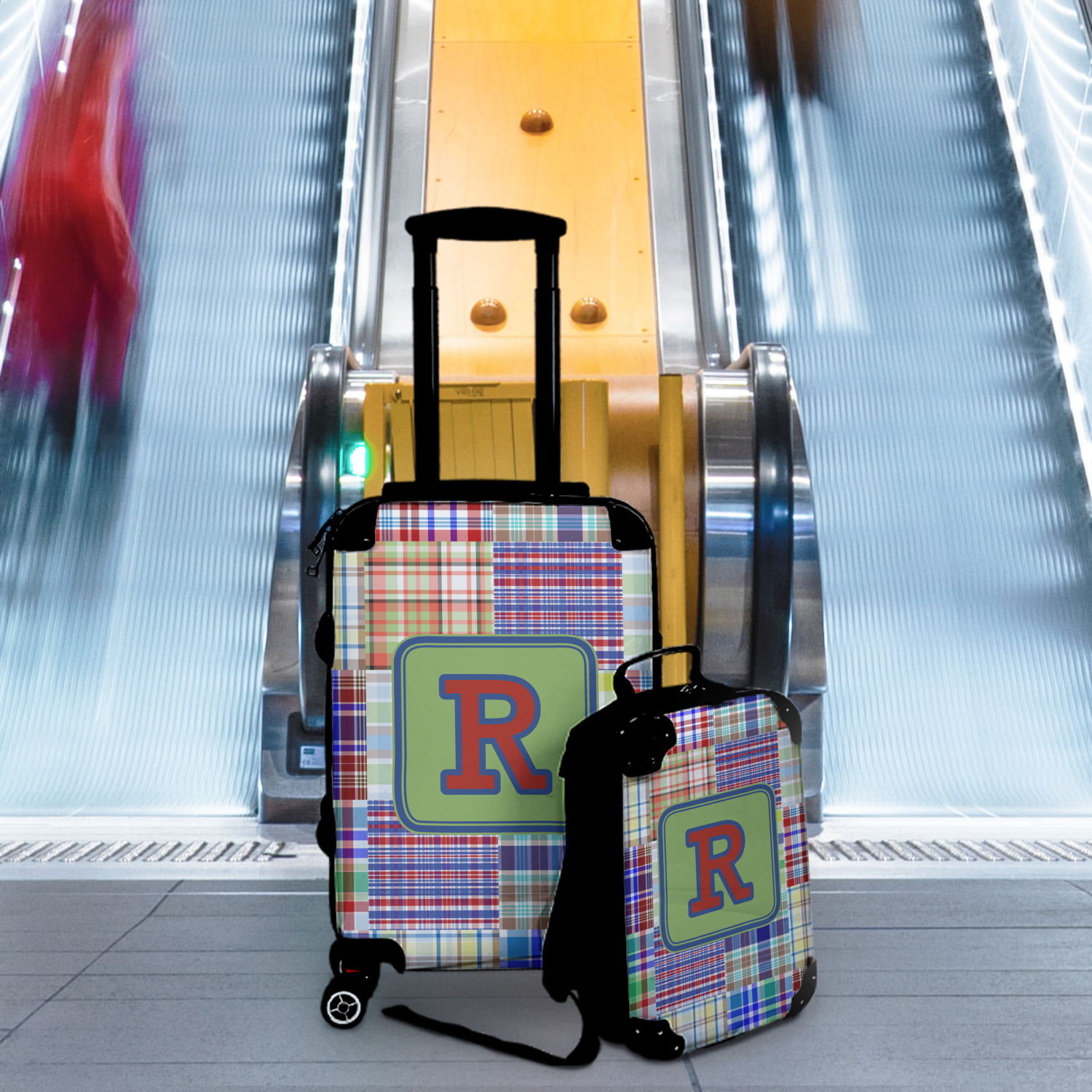 A square label is the perfect place for your initial, to make this collection of plaids truly you.