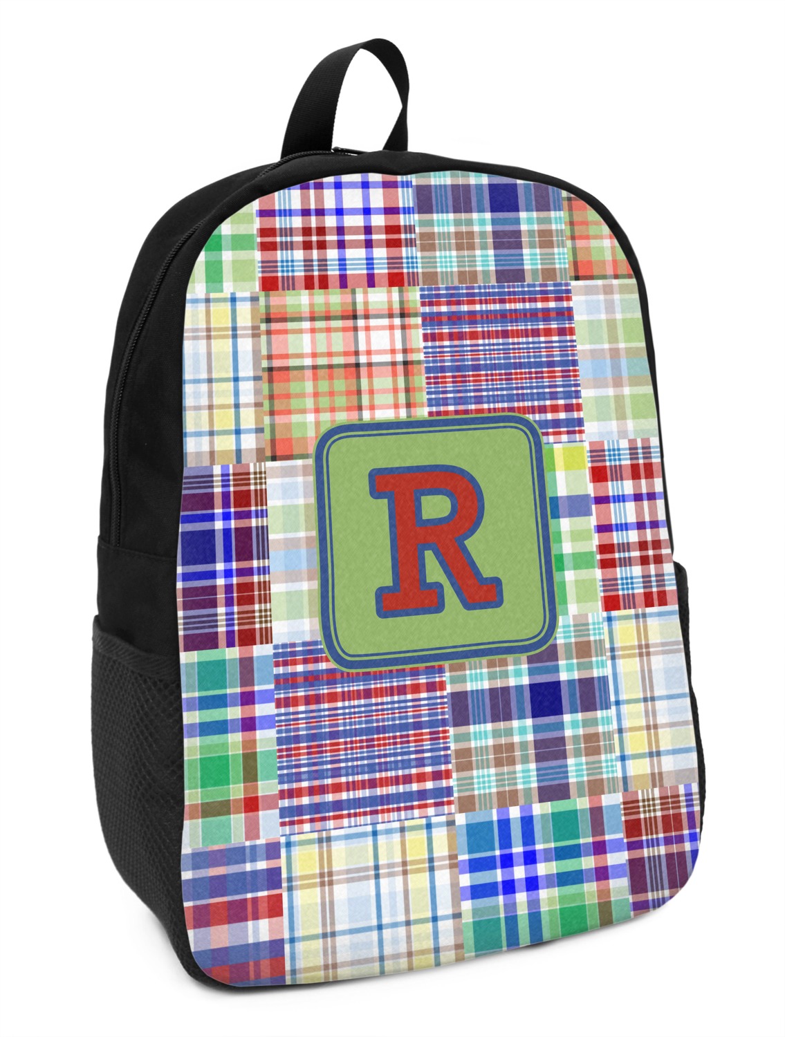 A square label is the perfect place for your initial, to make this collection of plaids truly you.
