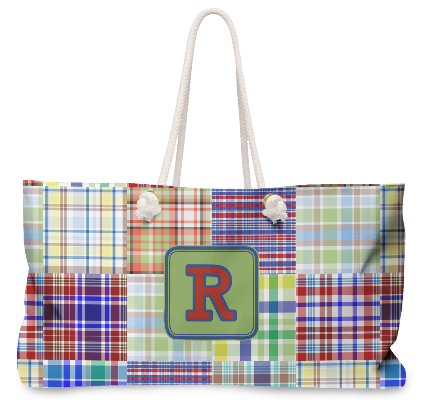A square label is the perfect place for your initial, to make this collection of plaids truly you.