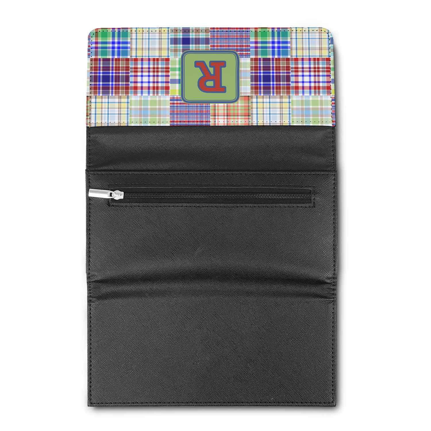 A square label is the perfect place for your initial, to make this collection of plaids truly you.