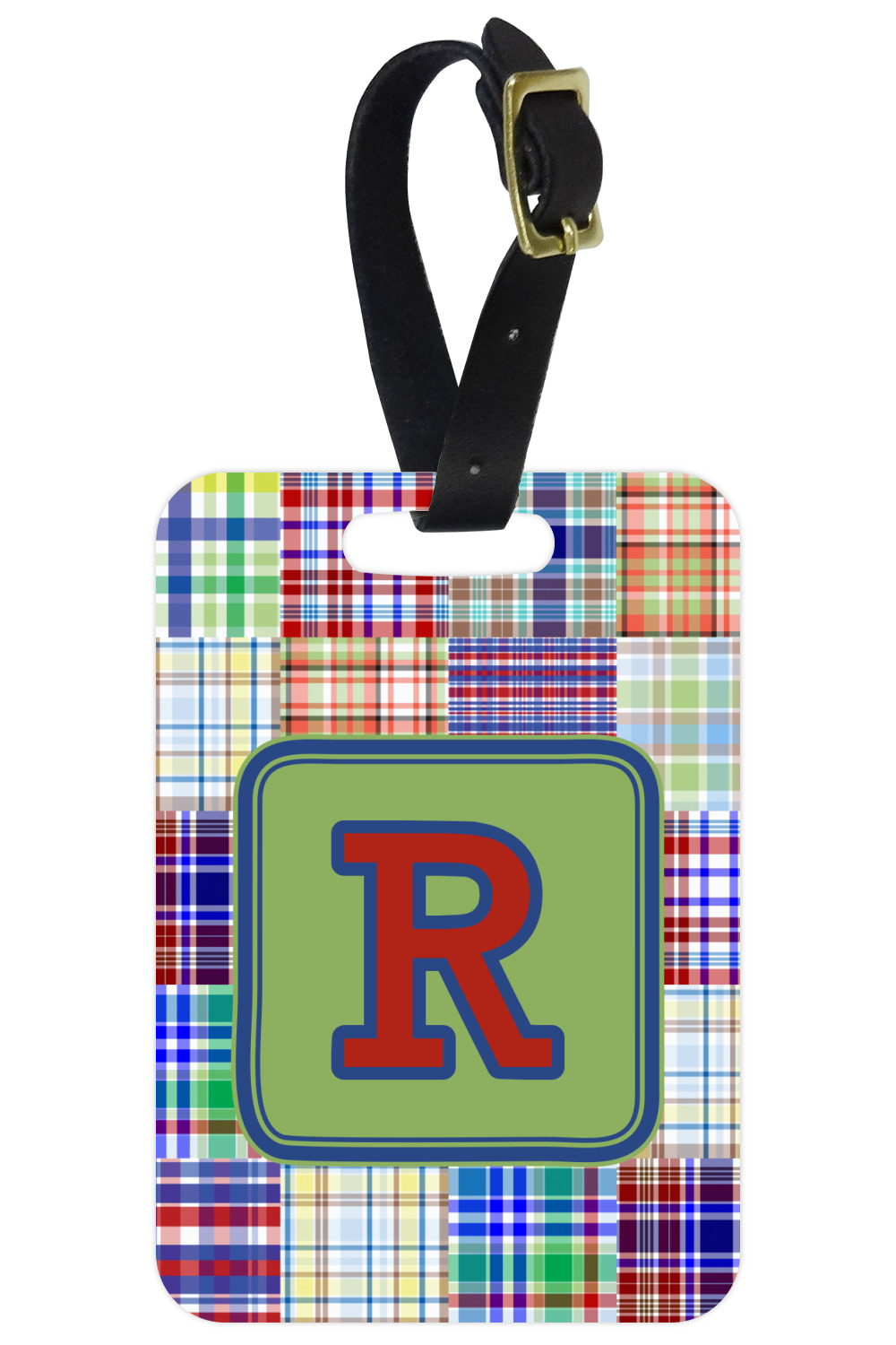 | SKU | mi-rect-luggage-tag-alum+Blue-Madras-Plaid |
