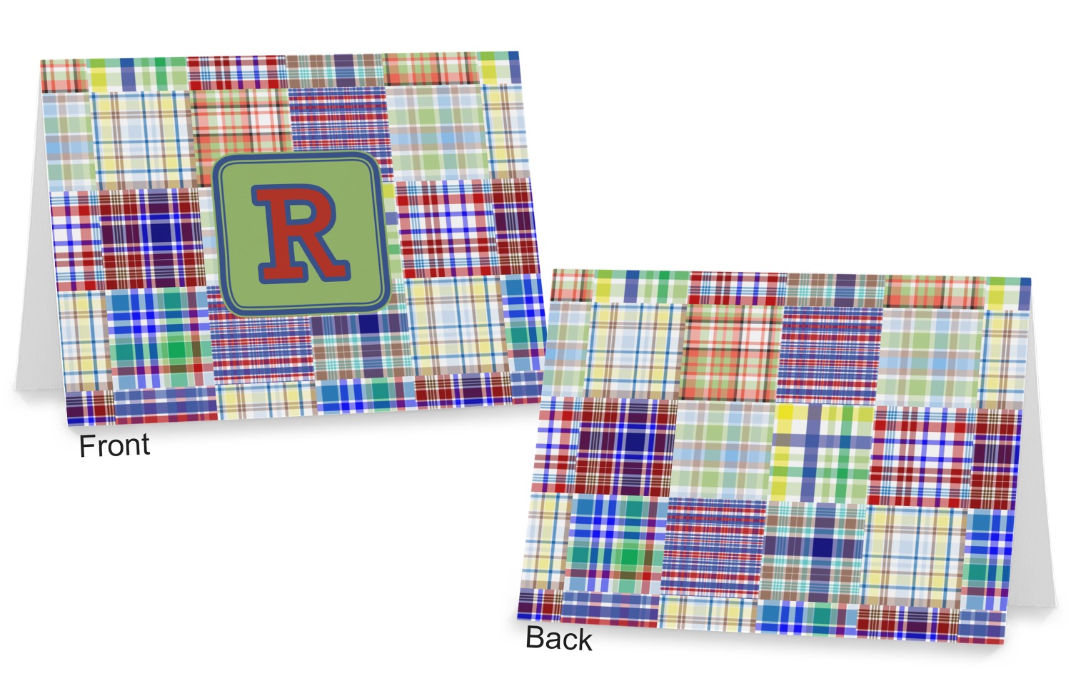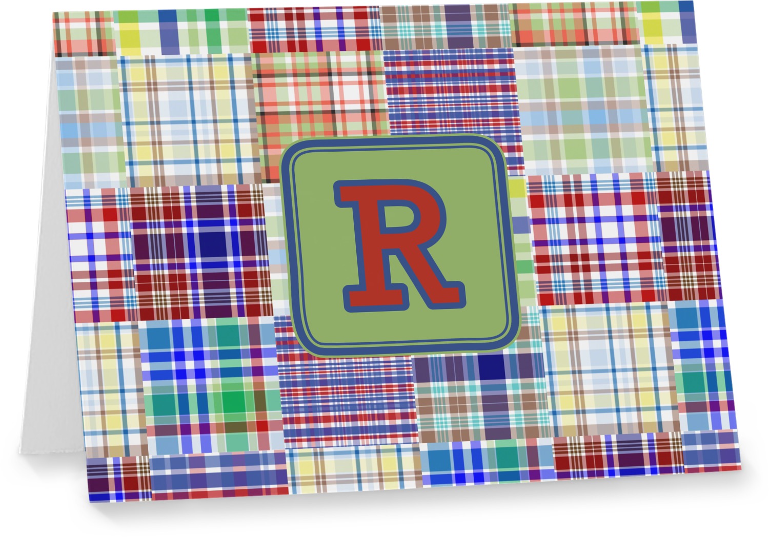 A square label is the perfect place for your initial, to make this collection of plaids truly you.