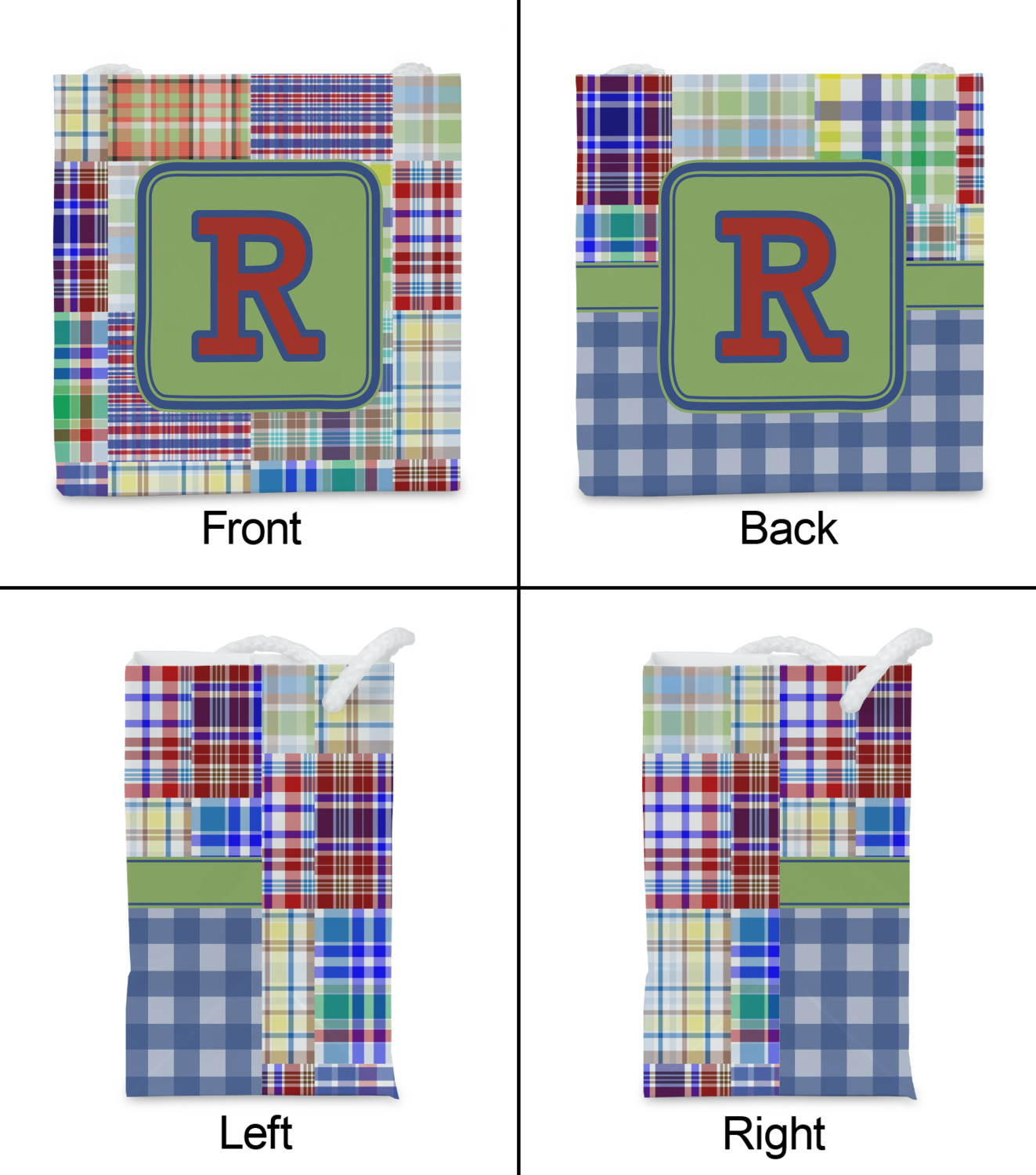 A square label is the perfect place for your initial, to make this collection of plaids truly you.