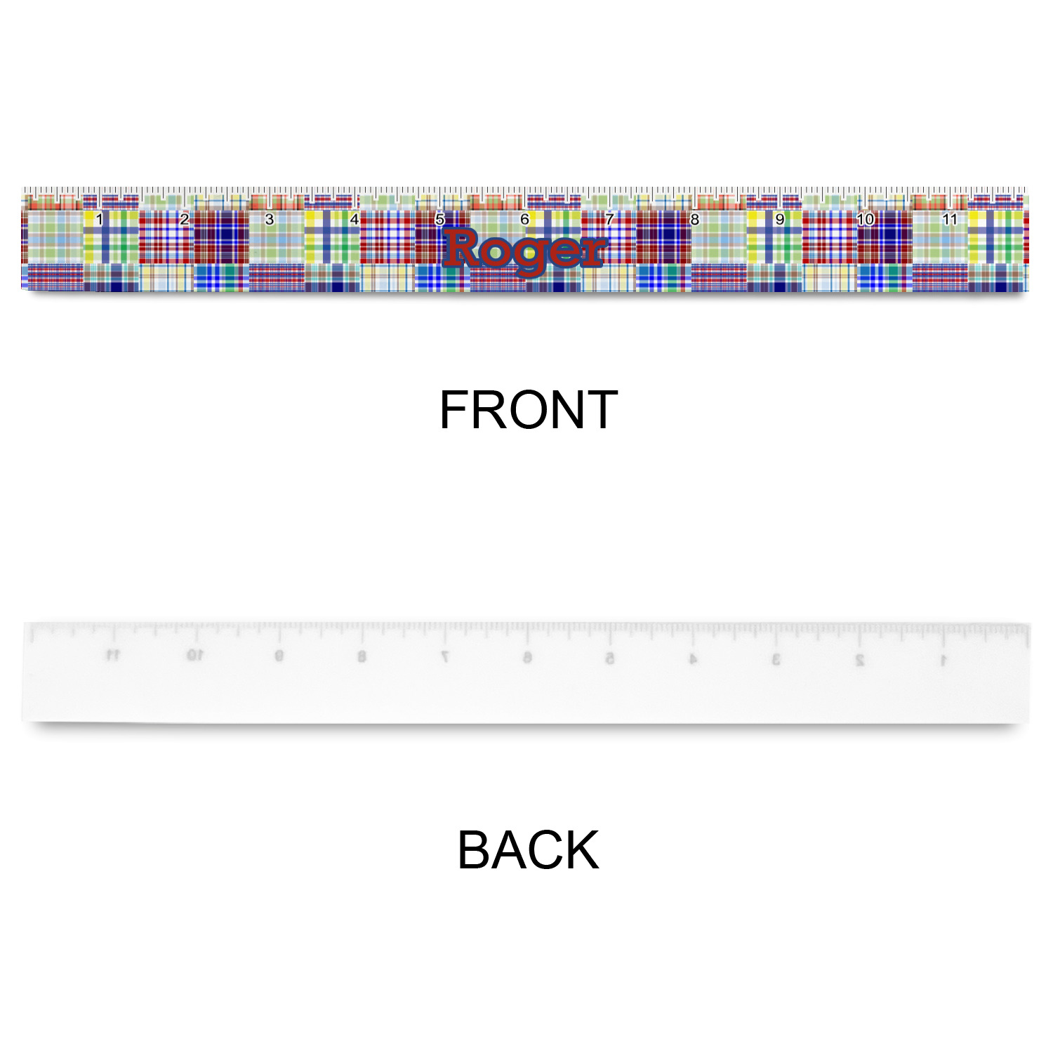 A square label is the perfect place for your initial, to make this collection of plaids truly you.