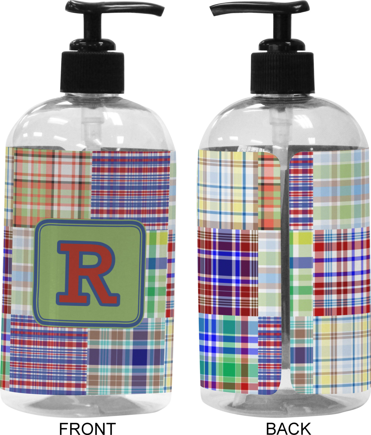 A square label is the perfect place for your initial, to make this collection of plaids truly you.