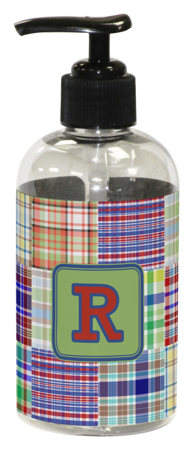 A square label is the perfect place for your initial, to make this collection of plaids truly you.