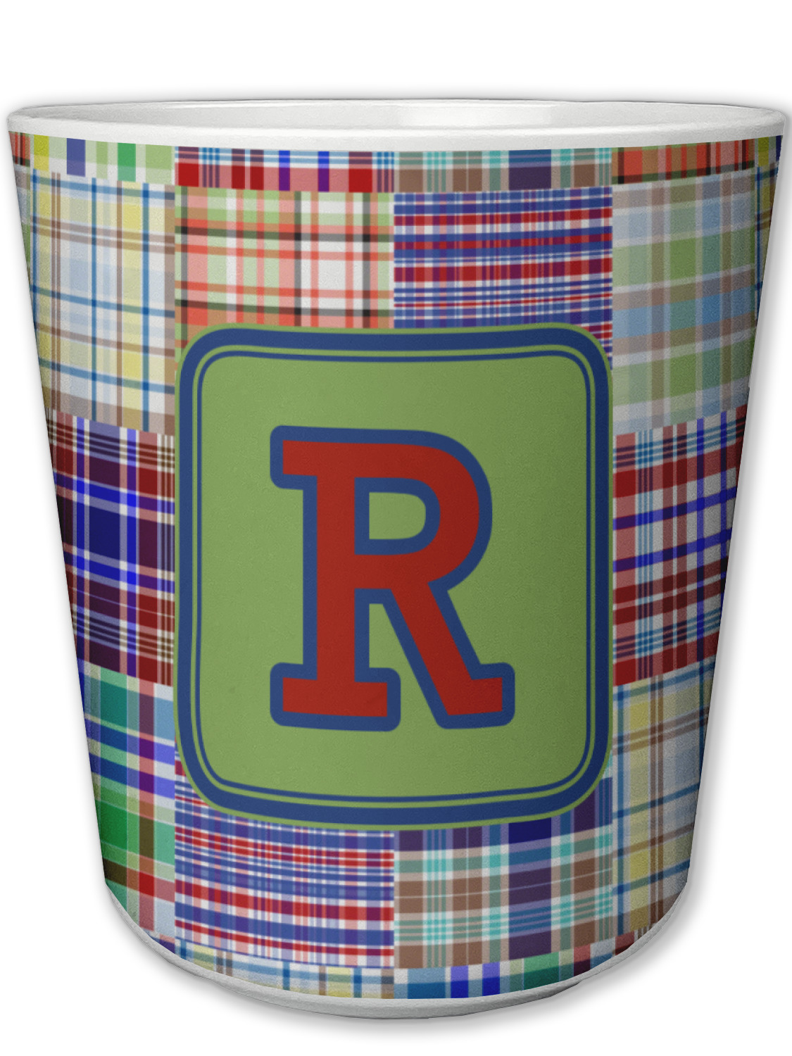 A square label is the perfect place for your initial, to make this collection of plaids truly you.