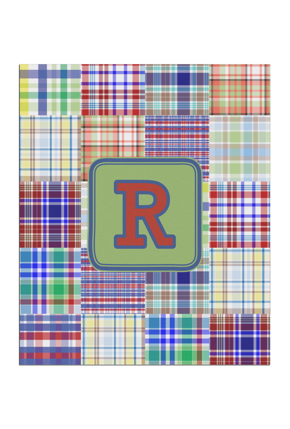 A square label is the perfect place for your initial, to make this collection of plaids truly you.