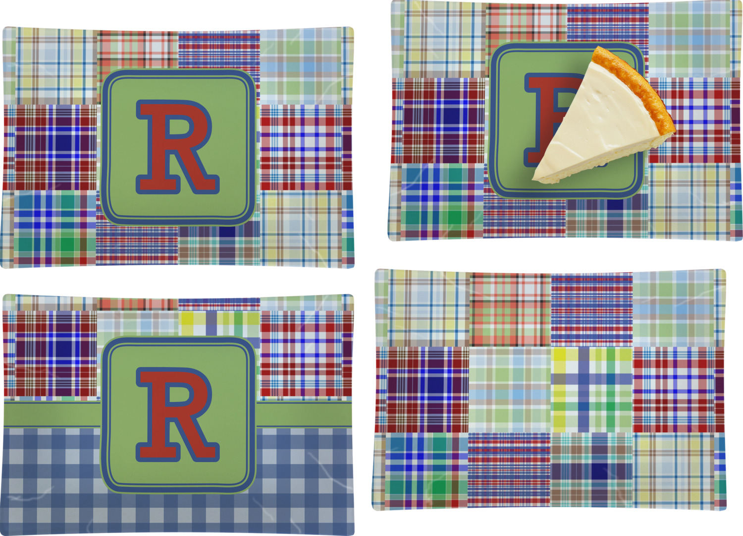 A square label is the perfect place for your initial, to make this collection of plaids truly you.