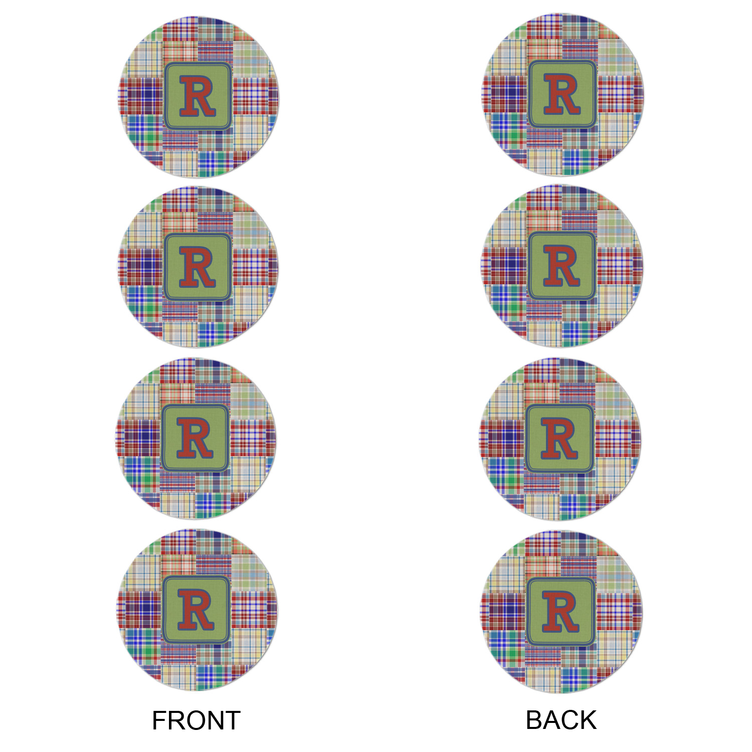A square label is the perfect place for your initial, to make this collection of plaids truly you.