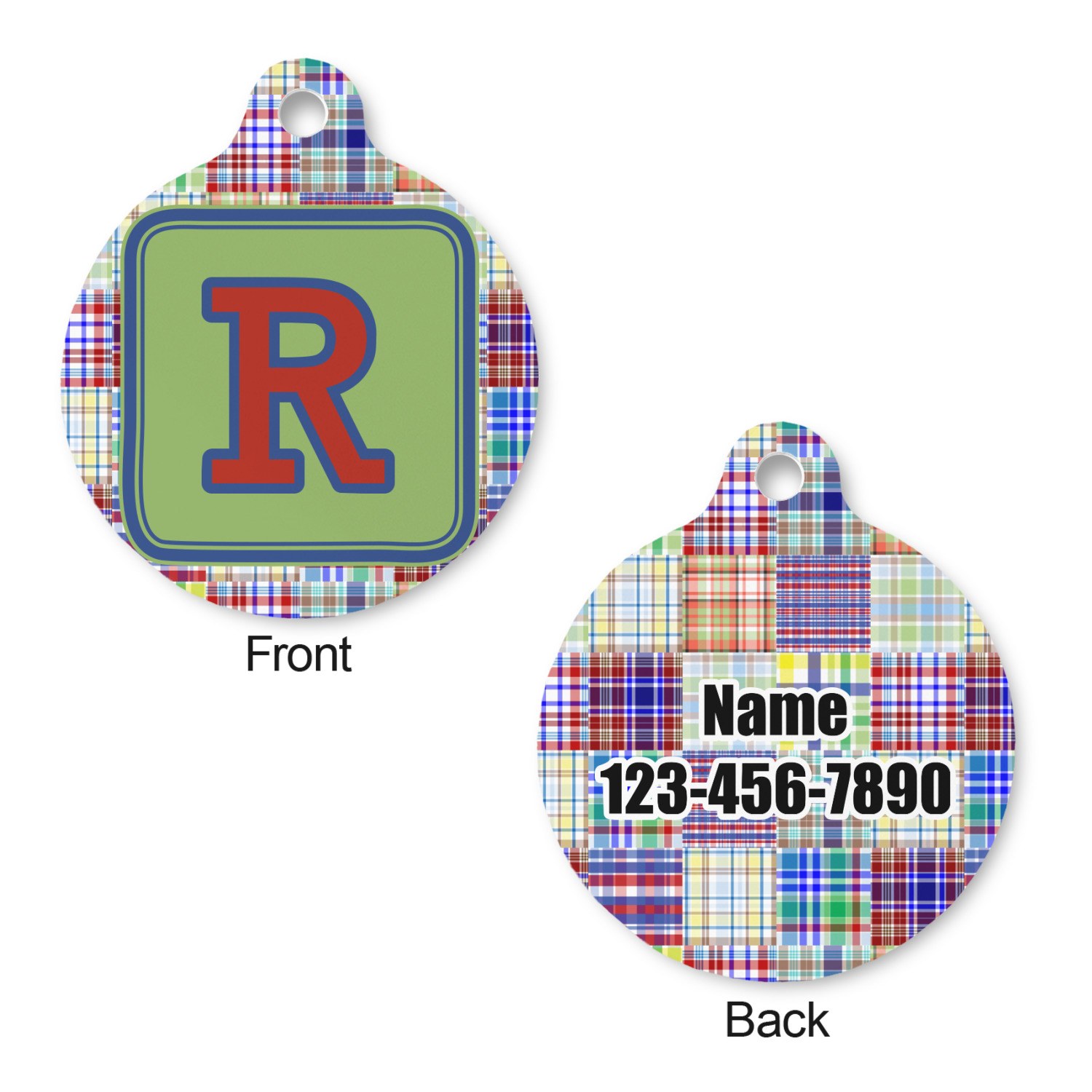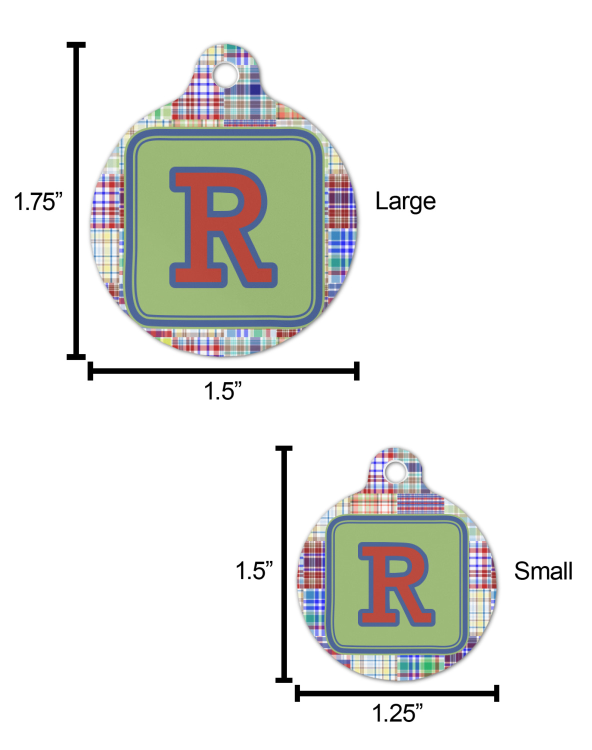 A square label is the perfect place for your initial, to make this collection of plaids truly you.