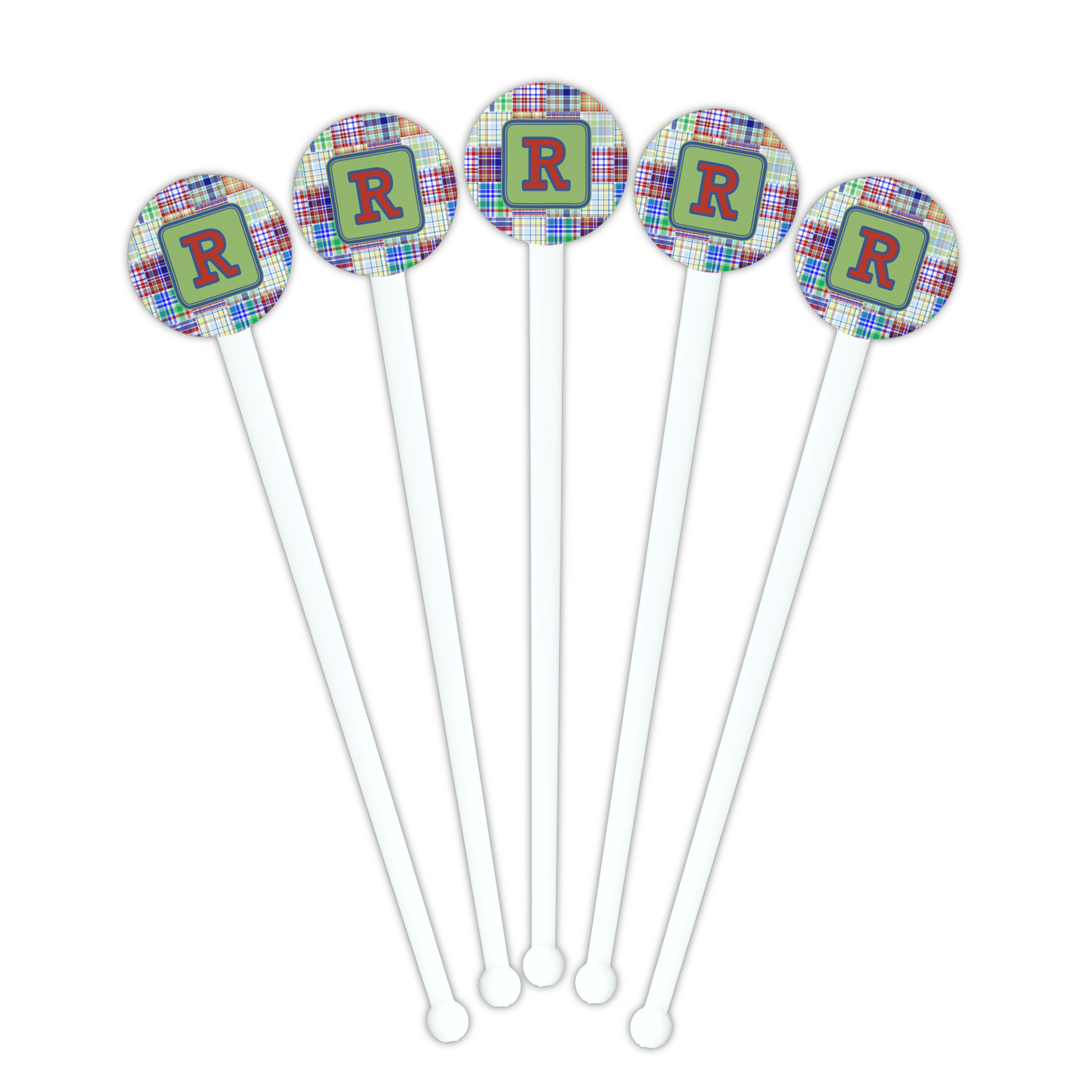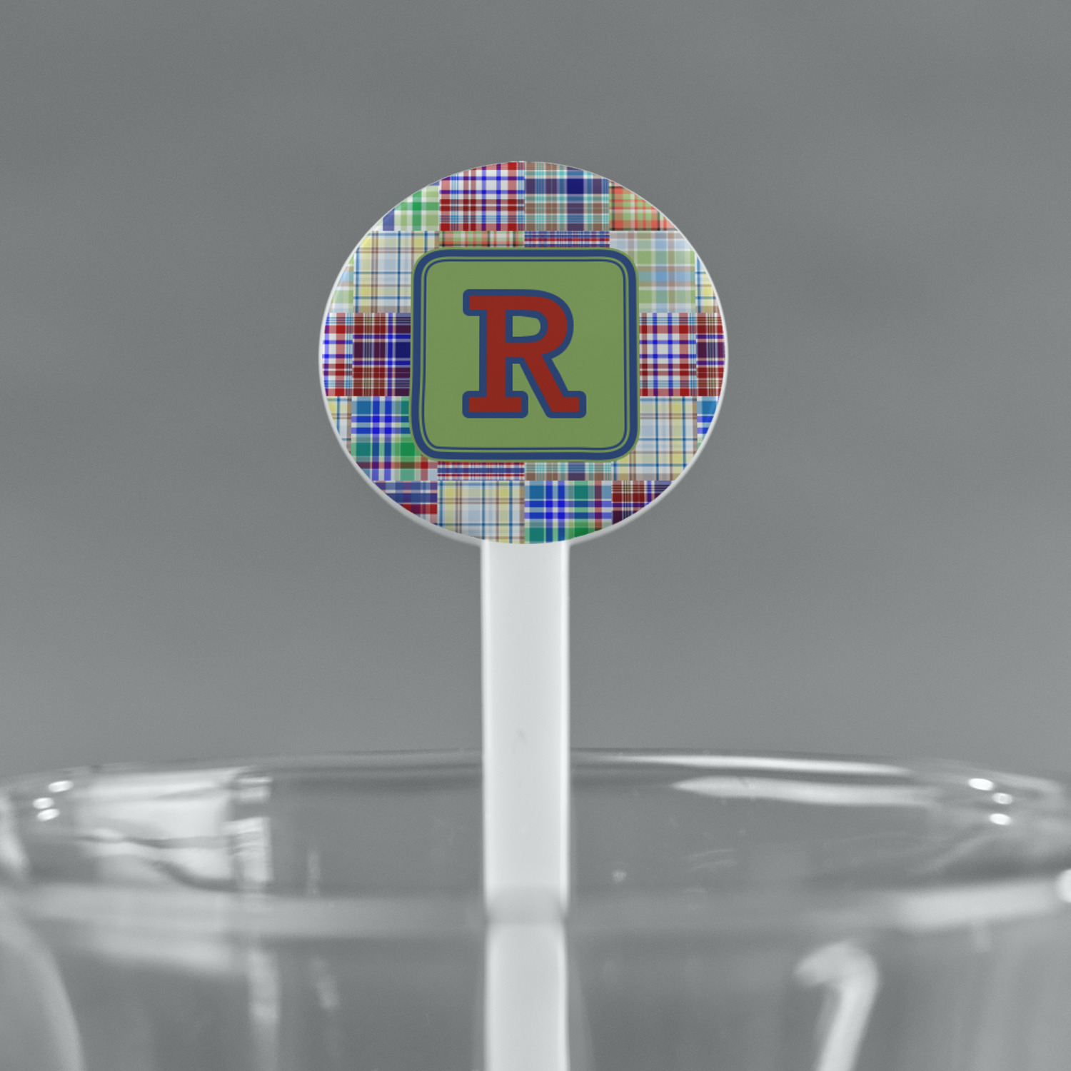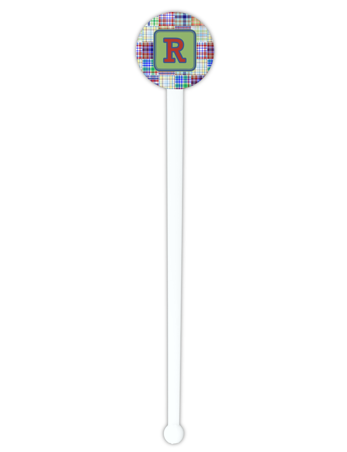 A square label is the perfect place for your initial, to make this collection of plaids truly you.