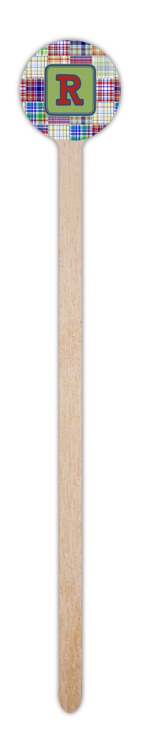 A square label is the perfect place for your initial, to make this collection of plaids truly you.