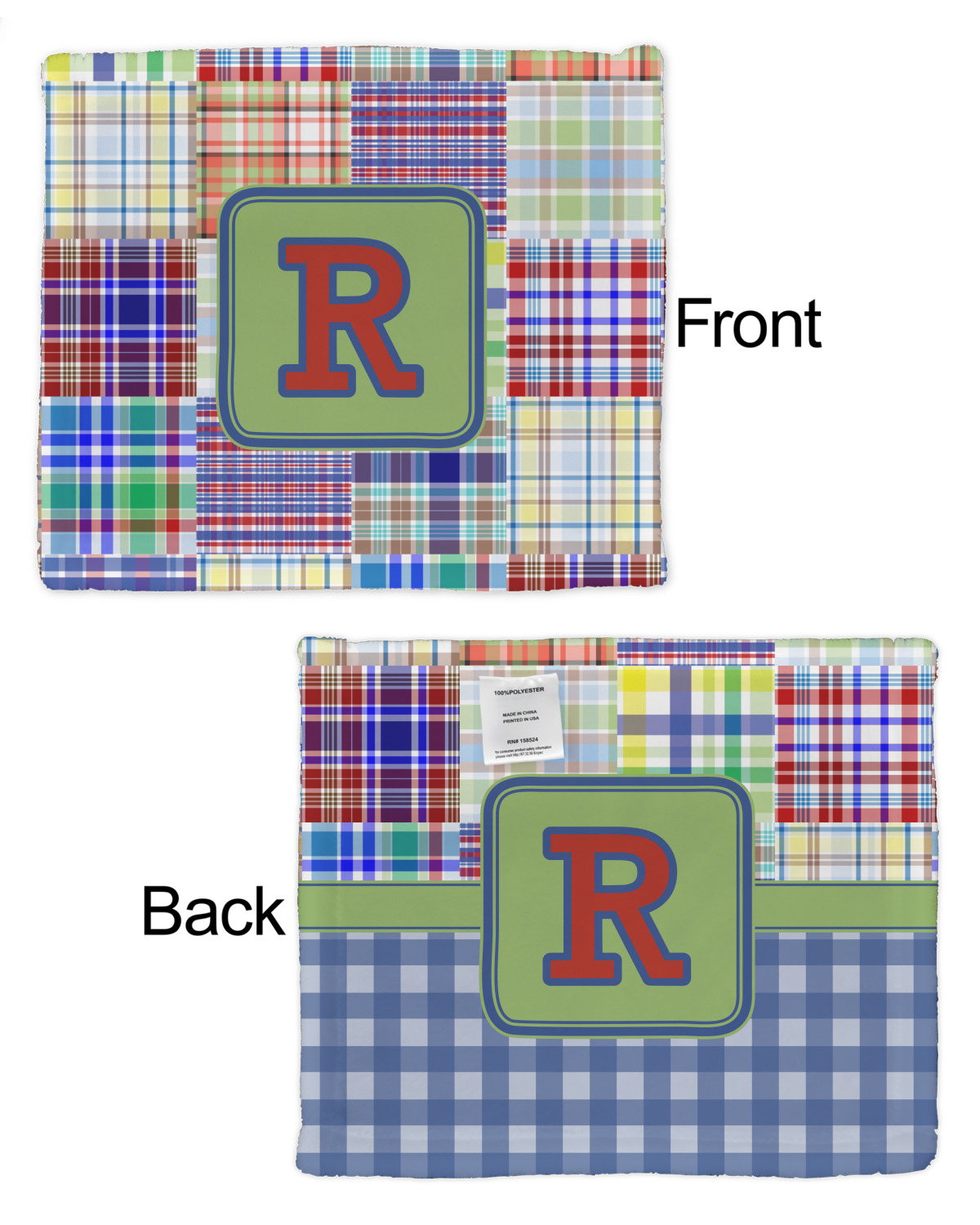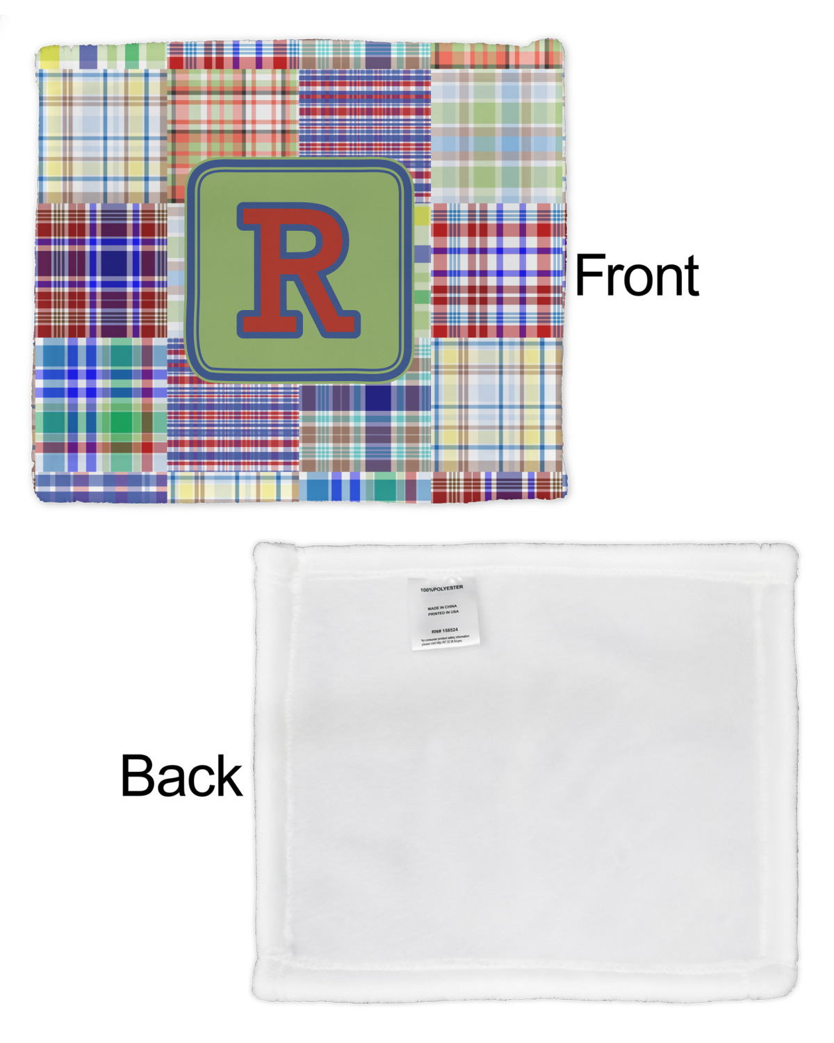 A square label is the perfect place for your initial, to make this collection of plaids truly you.