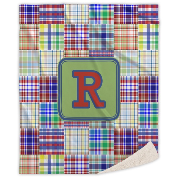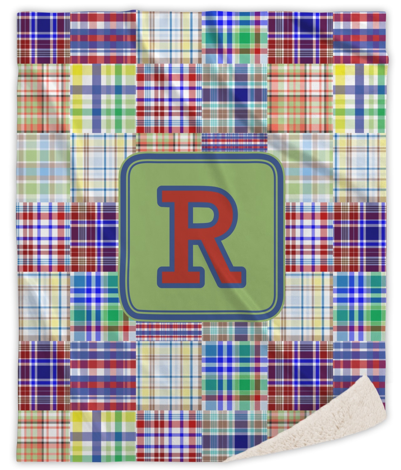 A square label is the perfect place for your initial, to make this collection of plaids truly you.