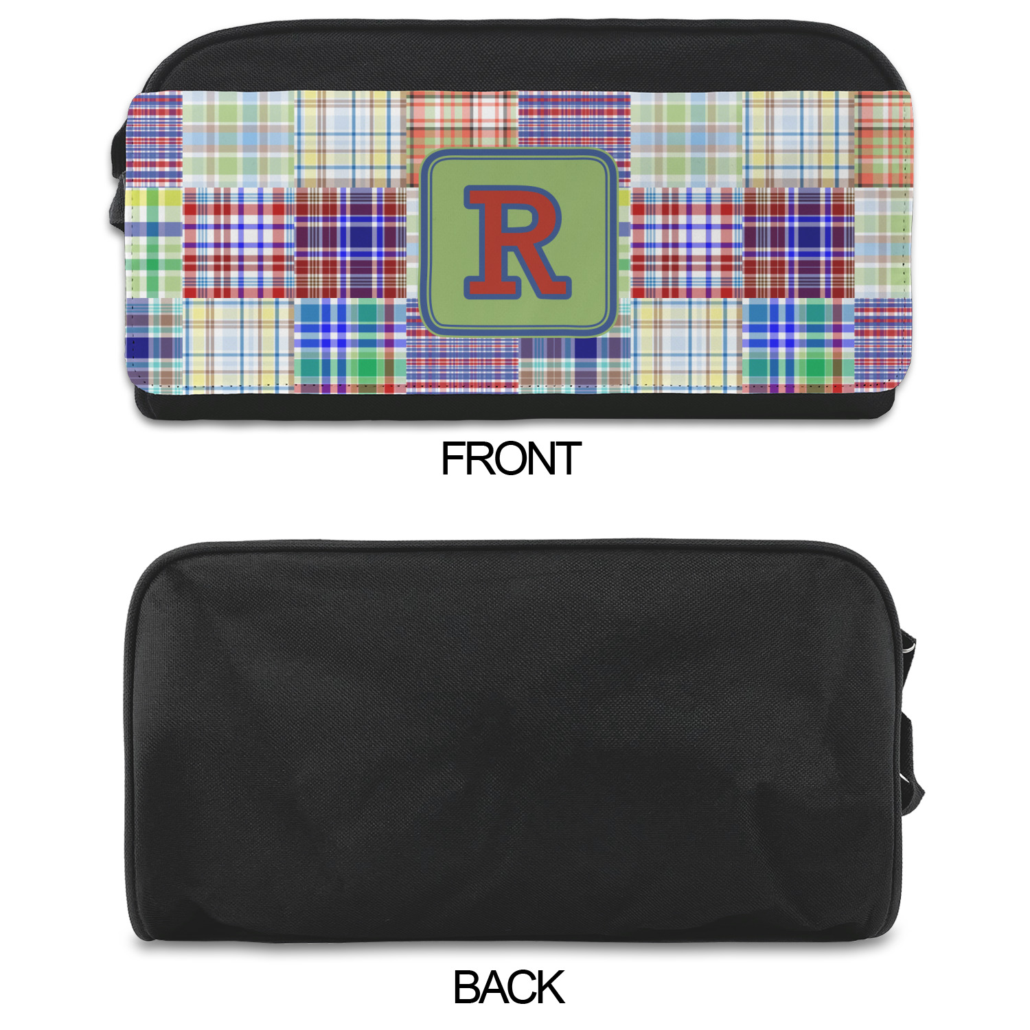 A square label is the perfect place for your initial, to make this collection of plaids truly you.